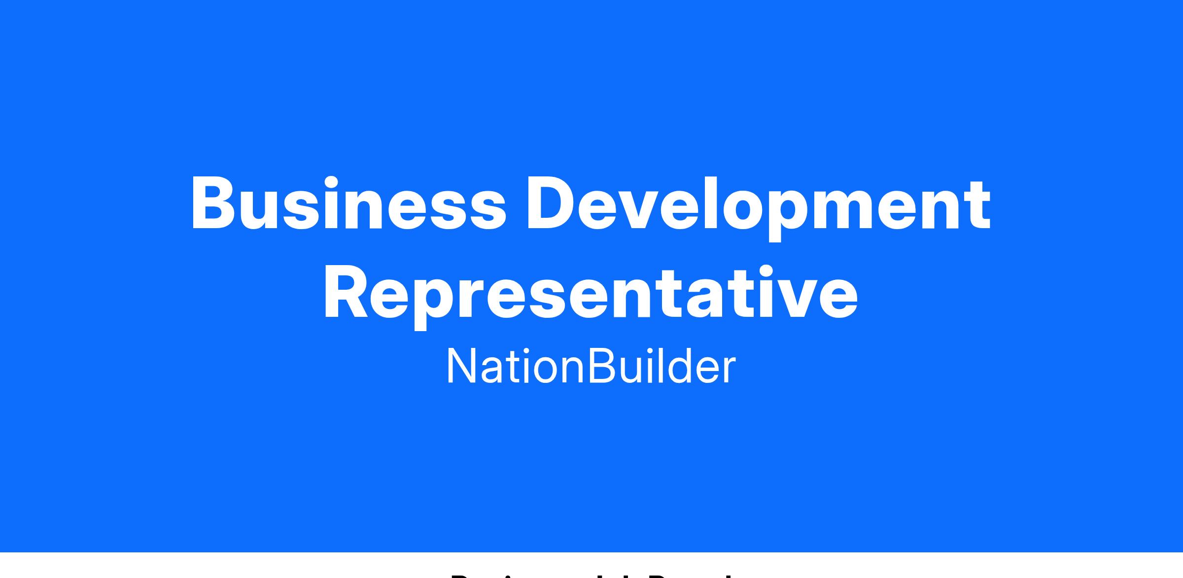 NationBuilder’s Business Development Representatives are responsible for researching, planning and executing outbound prospecting campaigns, creating interest and excitement in NationBuilder’s products, events, professional services and experiences, and ultimately driving more customers and revenue for the business. The right candidate will be an energetic person who operates proactively and is deeply committed to our mission of serving the world’s leaders. As critical members of NationBuilder’s Marketing team, you will bring creativity, drive, a service orientation and a passion for building authentic relationships.