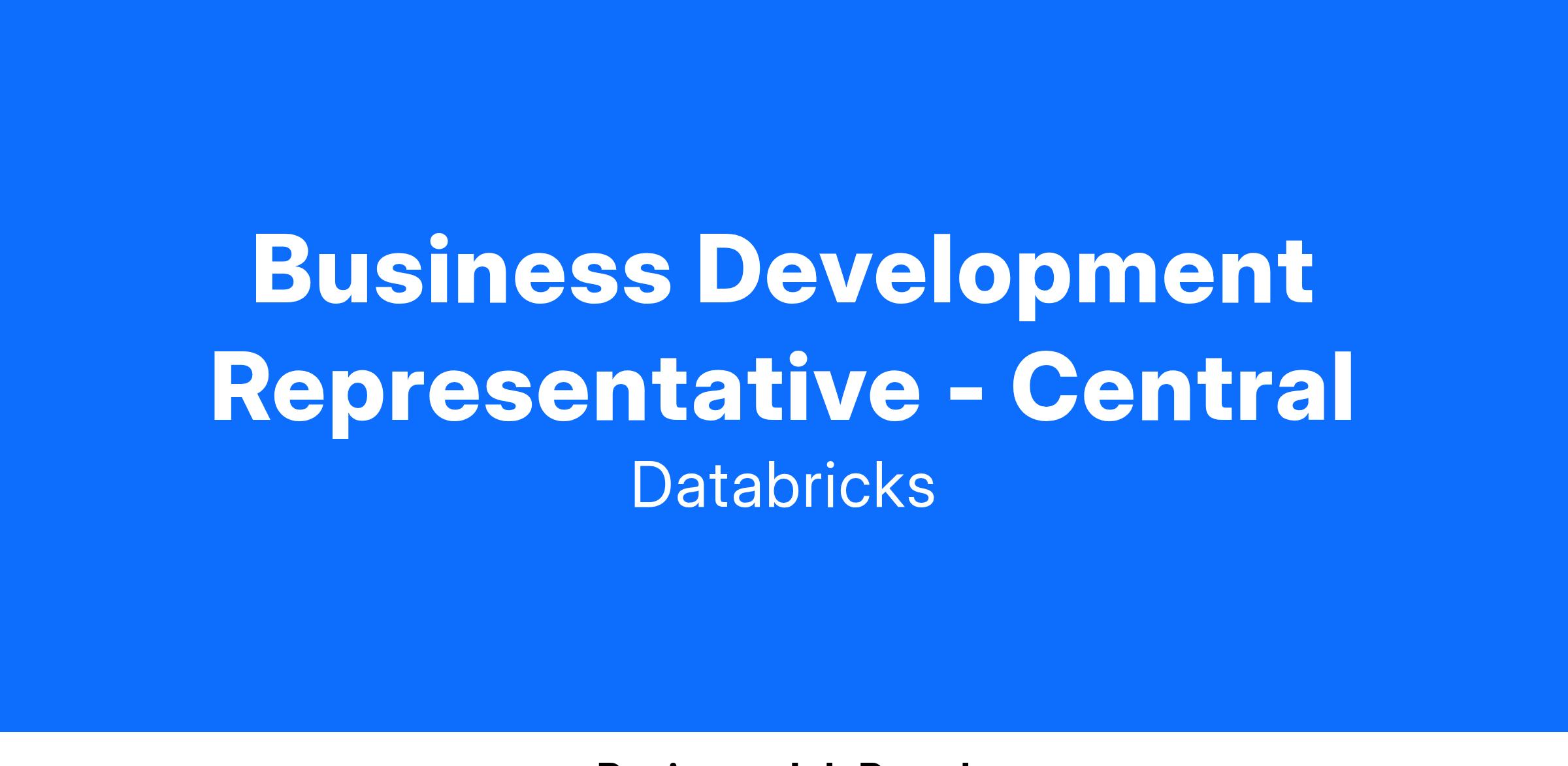 We’re looking for a Business Development Representative to represent Databricks to prospective customers. This role is perfect for a sales professional early on in their career, looking to help scale out a game-changing enterprise software company and develop their sales career. Reporting to the Sales Development Manager, you will be part of a dynamic team of like-minded individuals and have the opportunity to really make a difference in a budding regional team.
