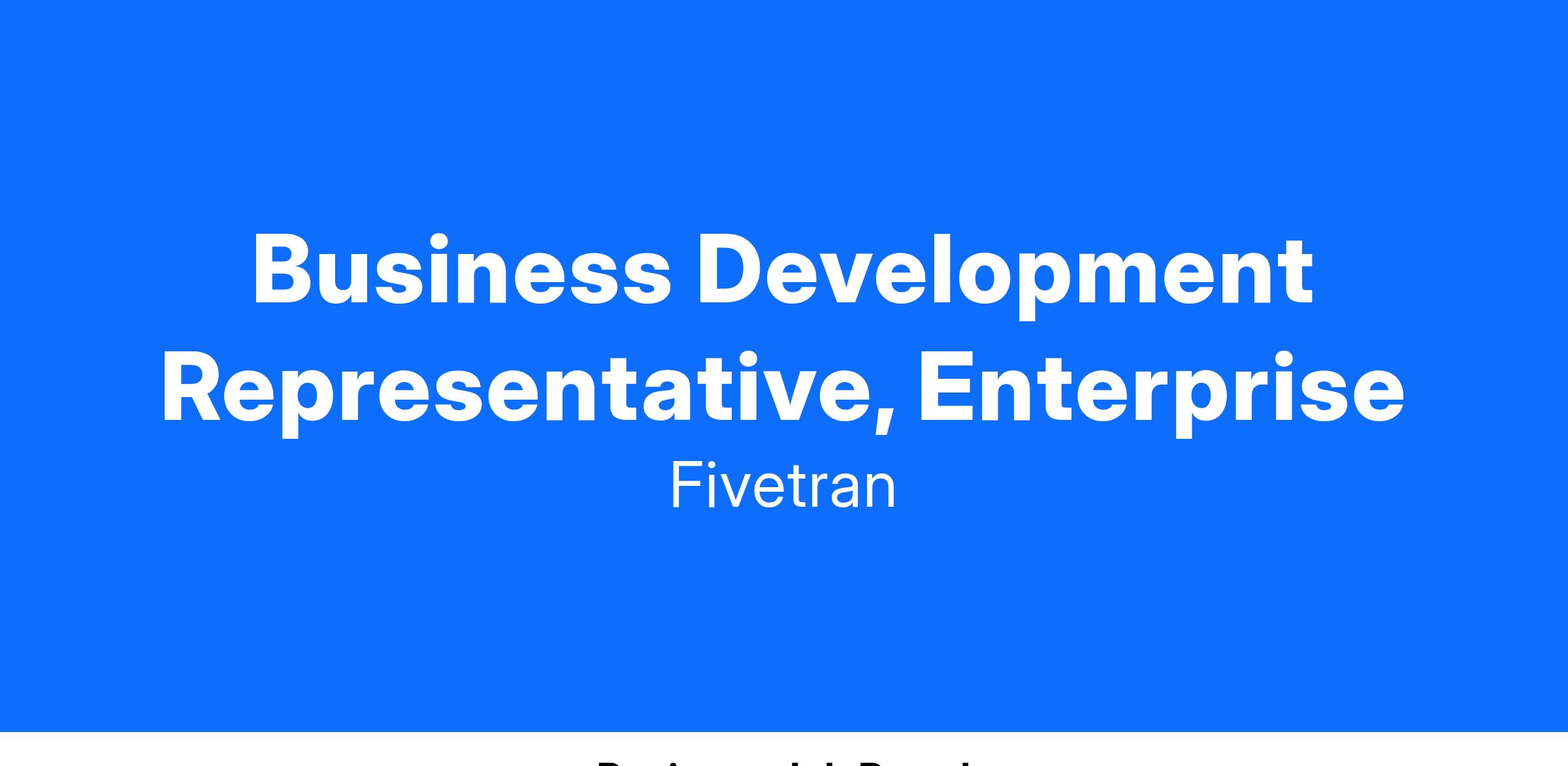 This position will contribute to the development of greenfield territories while building strong cross-departmental relationships. Unlike traditional BDR roles, this position emphasizes expertise development and the unique opportunity to build relationships with multiple Account Executives as we expand into new markets. You will collaborate closely with teammates and stakeholders across sales and marketing to drive Fivetran's growth and success and build a pipeline in new areas of the business. If you’re highly motivated, data-driven, and eager to make an impact, we want to hear from you!
