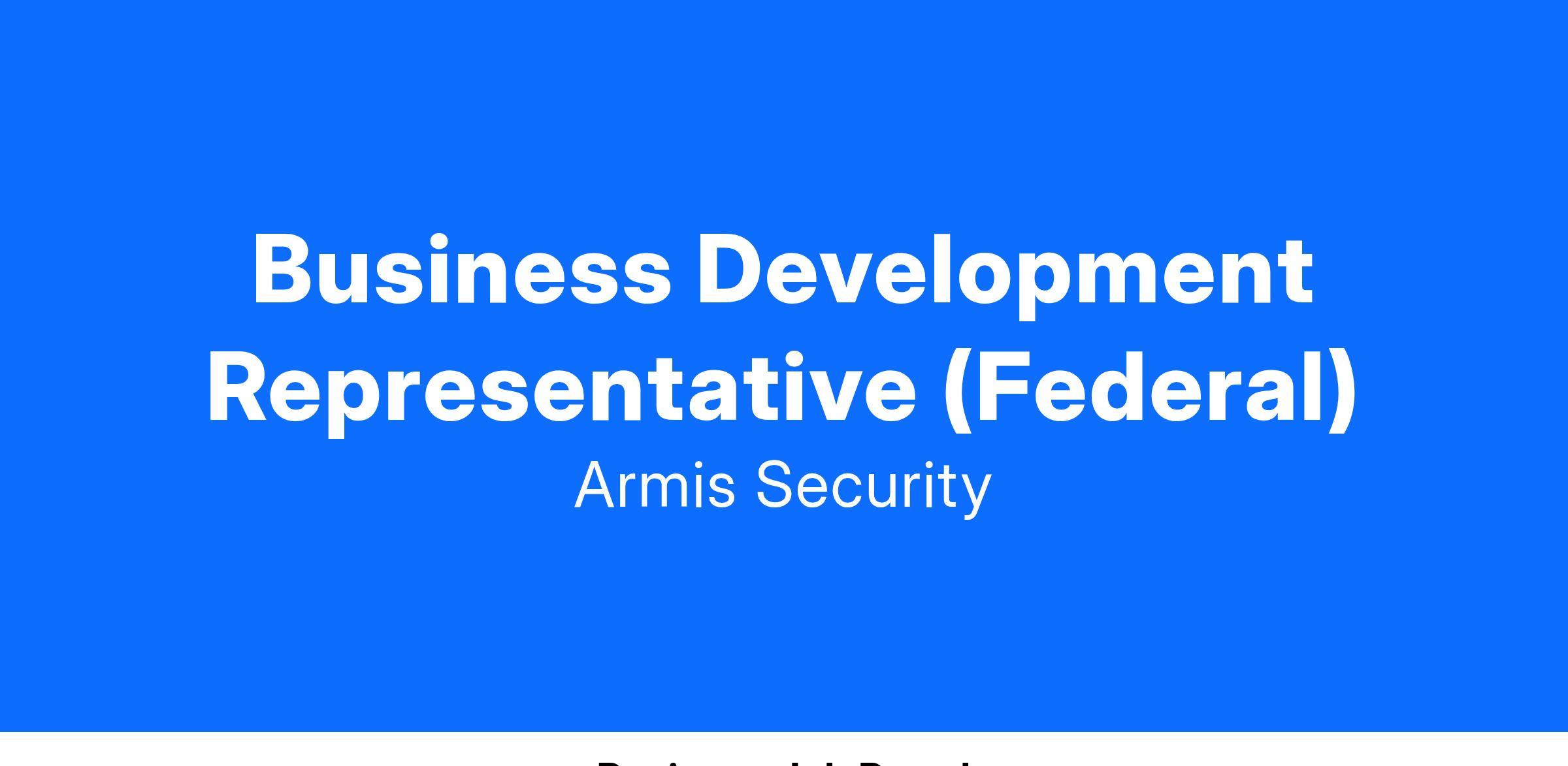 If you embody the following attributes, then the Armis BDR role is the right role for you!