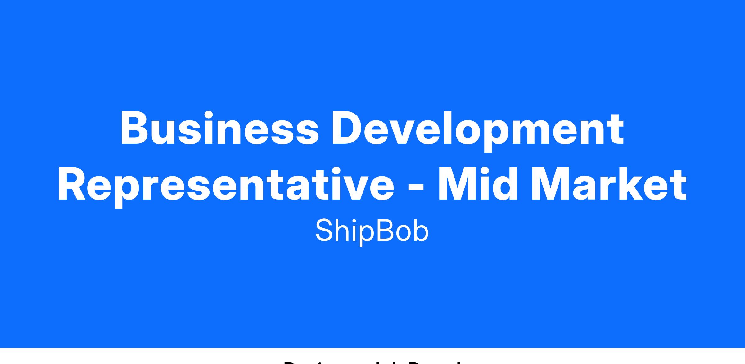 The Business Development Representative - Mid Market will help develop logistical solutions for mid market size businesses using the full suite of ShipBob's services. This role’s primary responsibility is to strategically construct outreach and set qualified meetings that convert to closed deals for our Mid Market Account Executives. They achieve their monthly quota by meeting or exceeding expected metrics for outbound touches and demos set and converted. This role reports to the Manager, Business Development.