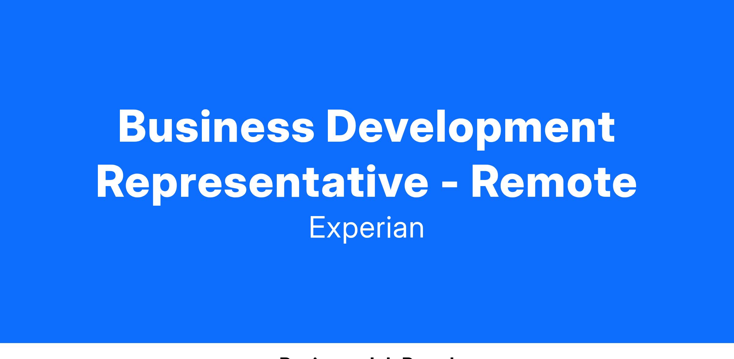 The Business information Services BDR team is a fast-growing, organization within Experian, that has growth targets to support the vigorously growing Business Development group. You will find decision makers within organizations, explaining all of Experian's offerings, and setting up introductory calls between the prospect and our sales team. The BDR is the first impression many companies will have of Experian; therefore, it is critical that you are friendly, professional, and you provide an excellent client experience.