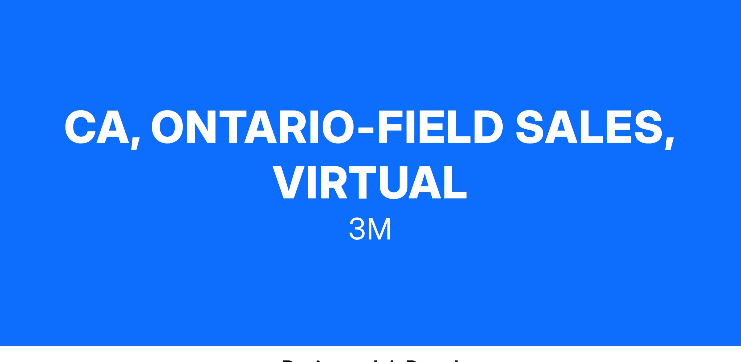 Location and Travel: Preferred to reside within Ontario and within 2 hours proximity of a commercial airport. Position may include up to 50% travel.