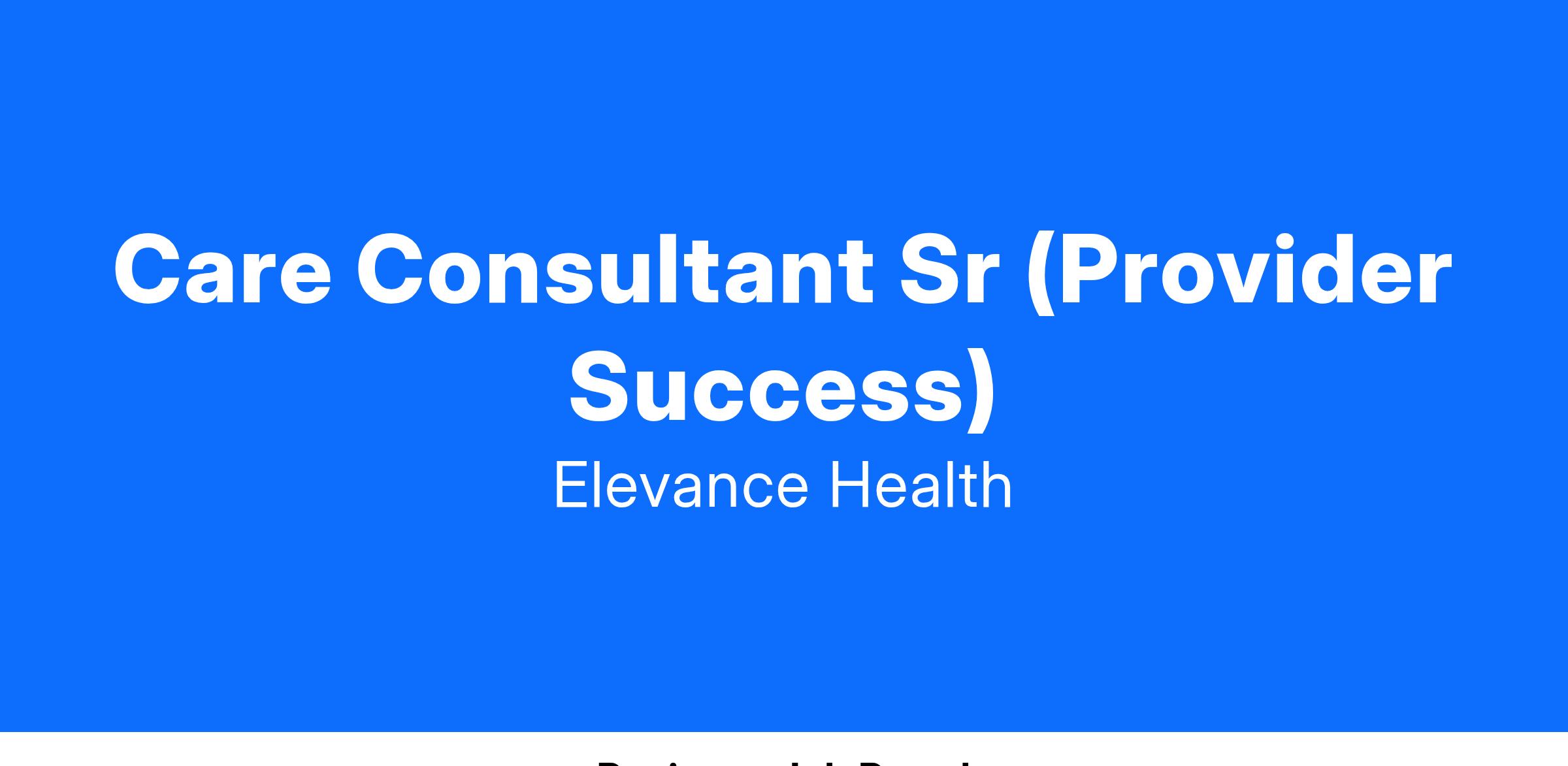 Care Consultant Sr (Provider Success)Job Description: