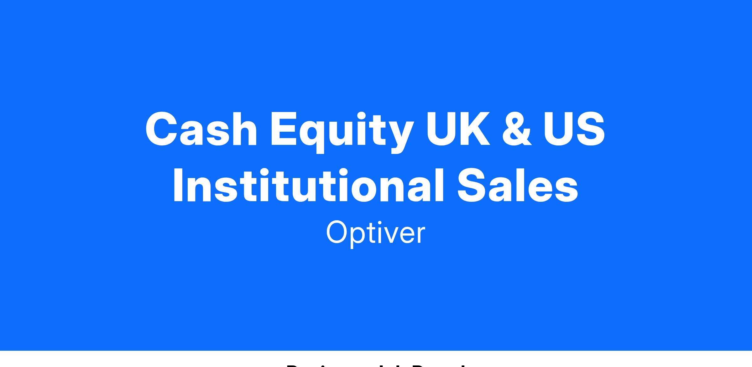 As one of the world’s leading Market Making firms, we at Optiver pride ourselves on our ability to improve the market by providing liquidity in all market conditions. Our Institutional Sales teams are central to that success, trading directly with counterparties across the globe.