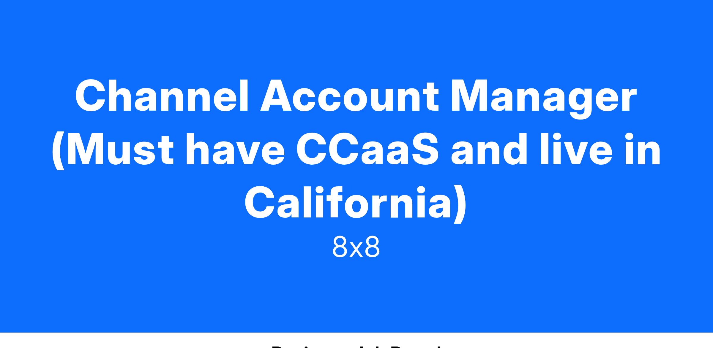 The Channel Account Manager (CAM) is part of the Indirect Channel sales organization and is responsible for sales and revenue growth in a geographic territory which includes designated Regional Partners, Sub-agents and branches of National Partners. Our Channel Account Managers are expected to use consultative and strategic selling skills along with a strong understanding of the UCaaS industry to consistently achieve quota attainment as assigned by management. They are also expected to develop highly productive reseller and referral partner relationships so that partners become self-sufficient in marketing and selling our products. Responsibilities Discover and manage sales opportunities with all designated Partners in region, providing accurate and updated sales funnel with current status Provide accurate and detailed weekly, monthly and quarterly forecast funnel of identified and proposed opportunities to meet or exceed quota requirements, in Salesforce Manage and execution of Partner planning document Develop territory plan, including documenting recruiting strategy Meet with Partners, participate in joint sales calls to customers and assist the Partner in closing opportunities An in-depth knowledge of the features and benefits and requirements of all Alliances routes to market and the ability to articulate it to Partners along with the value proposition Assist Partners in broadening their product expertise and sales opportunities, striving for growth from all associated selling resources Train partners on product, processes, and effective sales techniques Escalate any pricing, SLA or other issues as needed Coordinate Partner access to Sales Engineering, Field Marketing and overlay resources as appropriate Disseminate all communications and announcements Coordinate local Partner participation in events and training Drive product and promotions and programs Read all communications and maintaining a high level of knowledge on all products, programs and promotions Recruitment of partners in territory into partner program Qualifications 5+ years of related experience in the Channel with Channel Partners Proven success of building strong relationships and partnerships Advanced understanding of company's telecommunications products and network capabilities Minimum of intermediate understanding of company financial measures and advanced understanding of telecommunications industry and indirect sales modelThe compensation range reflects the Company’s good faith belief at the time of posting. 8x8 has different base pay ranges for different work locations within the United States, which allows us to pay employees competitively and consistently in different geographic markets. The range above reflects the potential base pay across the U.S. for this role; the applicable base pay range will depend on what ultimately is determined to be the candidate’s primary work location. Further, individual base pay depends on various factors, in addition to primary work location, such as complexity and responsibility of role, job duties/requirements, and relevant experience, knowledge, success, education and skills. Base pay ranges are reviewed and typically updated each year. Offers are made within the base pay range applicable at the time. Certain roles are eligible for additional rewards, including discretionary merit increases, bonus and/or stock. Certain roles have the opportunity to earn sales variable compensation incentives based on the terms of the plan and the employee’s role.