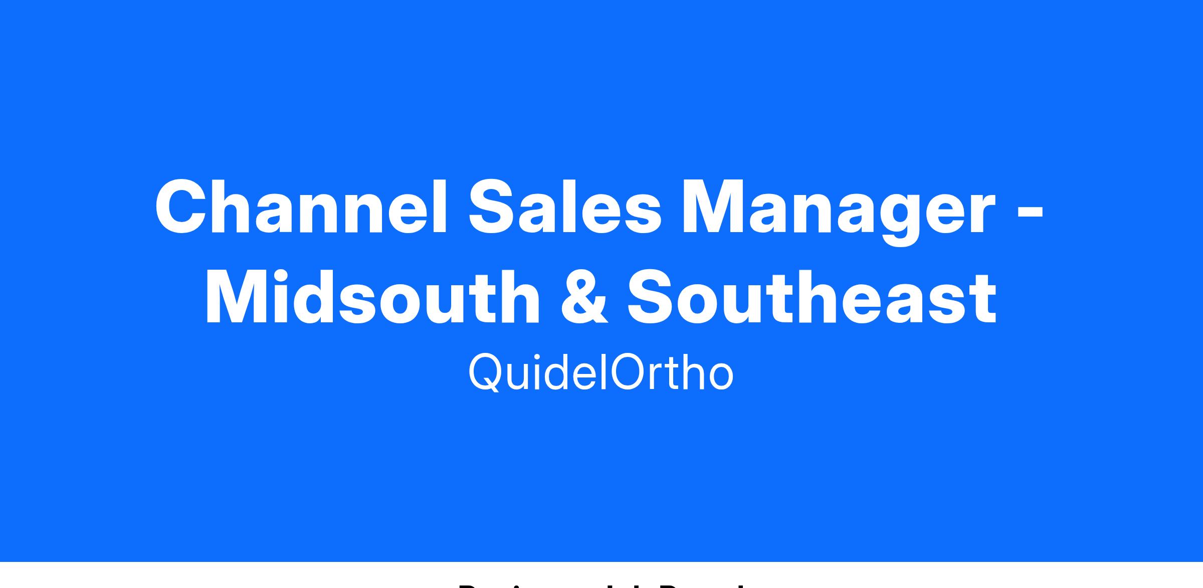 As we continue to grow as QuidelOrtho, we are seeking a Channel Sales Manager for the Midsouth & Southeast Territories. The Channel Sales Manager drives revenue and profitability within a sales region by leading and leveraging all distribution relationships at executive and field levels. This role leads and supports the distribution strategy for QuidelOrtho in the field with both our sales team and our distribution partners sales teams. Specifically, focused on developing and supporting new business opportunities & leads for hospital and physician office labs by partnering with distribution sales management, reps & teams. Leading & directing product launches, marketing strategies and sales programs with key distribution partners in all markets. Proactively facilitates relationship building between the region and its distribution partners, leading routine business reviews and initiating targeting and lead generation programs and initiatives. Trains distribution staff and field teams on all QuidelOrtho products and programs to increase sales revenue. Represents QuidelOrtho at distribution sales meetings and events to enhance a competitive edge in the highly competitive world of healthcare diagnostics. Supports the Regional Sales Director in meeting and exceeding regional revenue and business goals. The Channel Sales Manager will have leadership responsibility focused on various distributor strategies, programs, projects, and initiatives that are deemed important and prioritized by executive management that can impact the overall business.