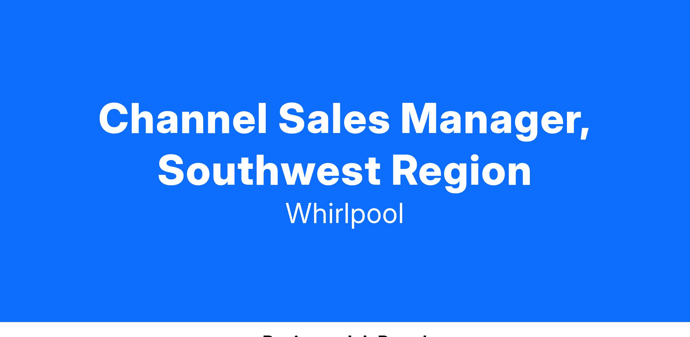 Whirlpool is currently seeking qualified candidates for a Sales Manager sits within the Southwest Region and is responsible for driving overall region builder channel sales strategy and leadership. This dynamic role provides a unique opportunity for customer management, with significant strategic impact and growth projections. Our new Sales Manager will oversee sales of all Whirlpool, Maytag, KitchenAid and Amana appliances. They will also have end to end P&L ownership and lead the joint business development strategy. This role will be based anywhere geographically within the region.