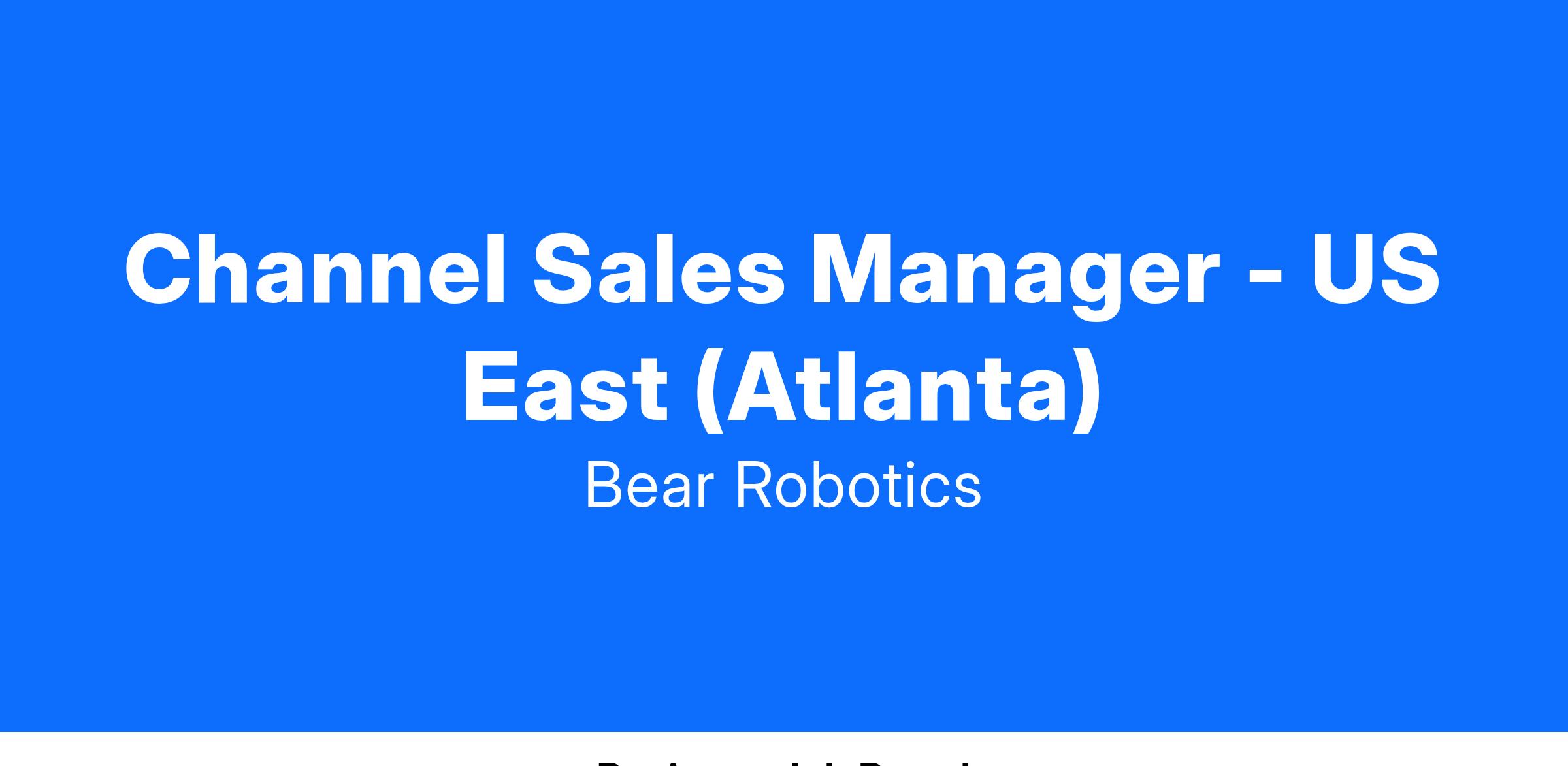 Job Title: Channel Sales Manager - US East