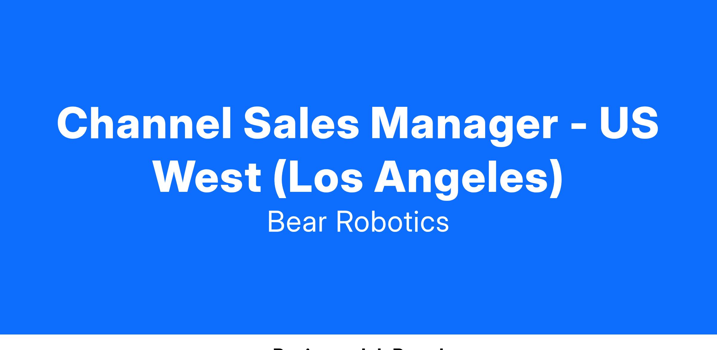 Job Title: Channel Sales Manager - US West