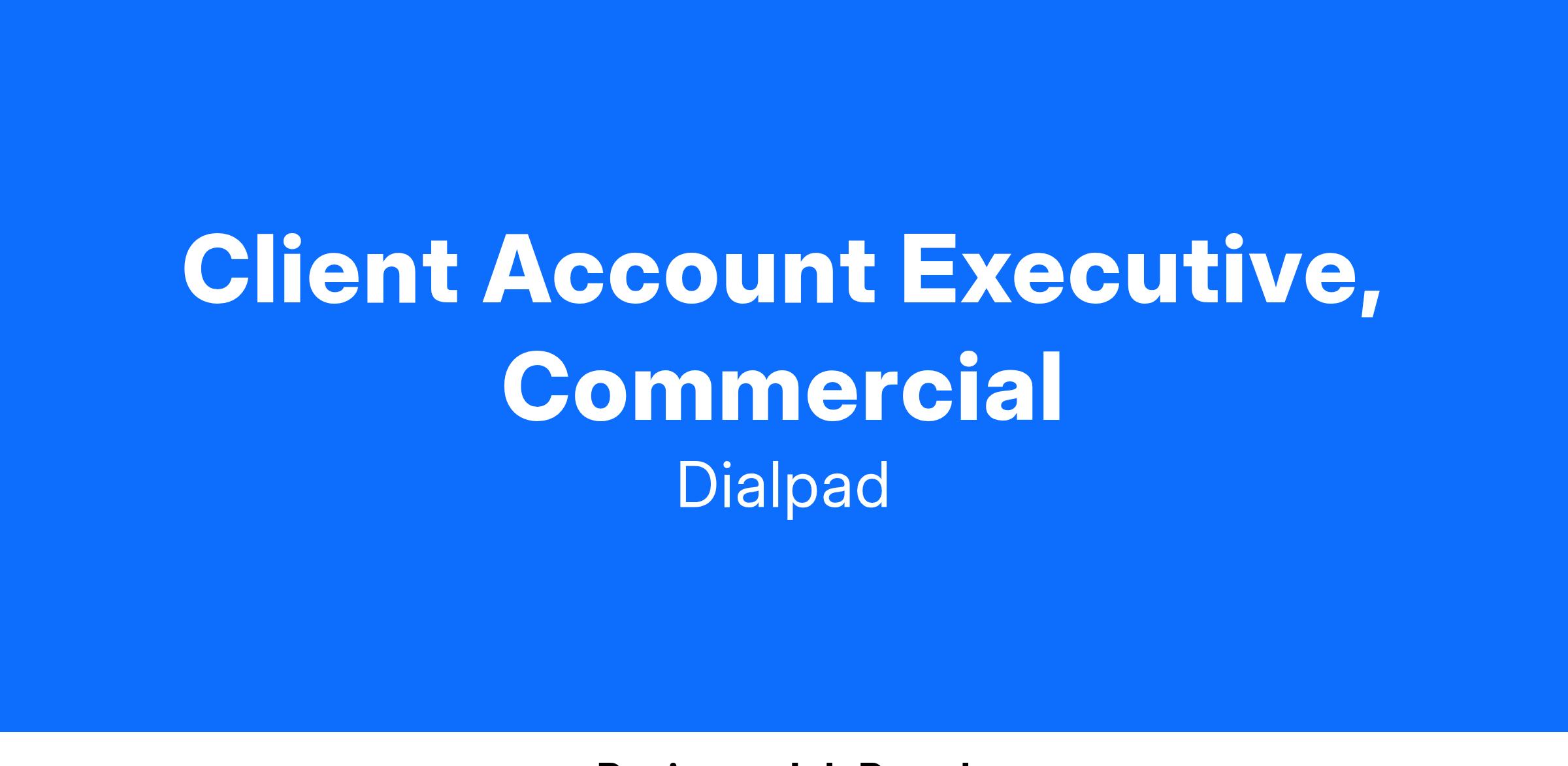 A Client Account Executive, Commercial at Dialpad is responsible for providing best in class account management across a portfolio of existing Dialpad customers while growing YoY revenue. Serving as a consultant to the client, the CAE will show the value of what's possible through the implementation of additional Dialpad product suite offerings.