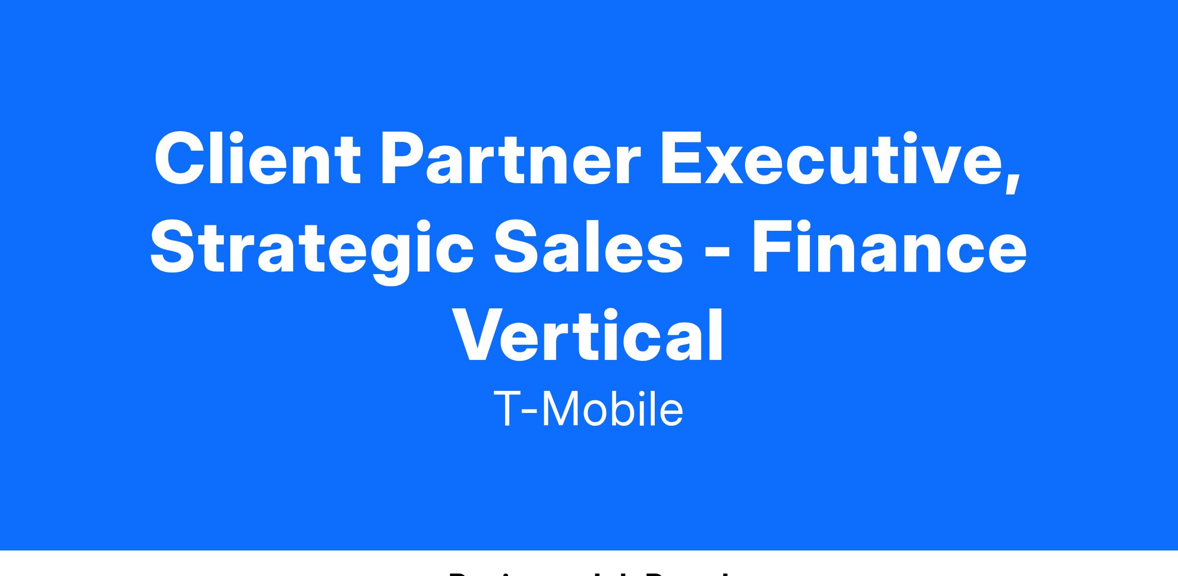 Success in this role will require you to take on responsibility for everything from developing the initial account relationships to meeting revenue objectives and performance metrics. You will analyze customer needs and utilize solution-based selling techniques to demonstrate the value of T-Mobile capabilities to win business.