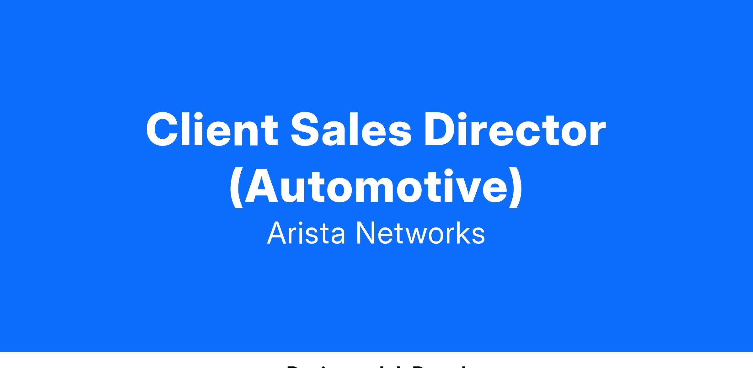 Arista appeals to forward-thinking organizations that value quality and innovation. Consequently, technical acumen and a track record of selling data center solutions is highly desirable.