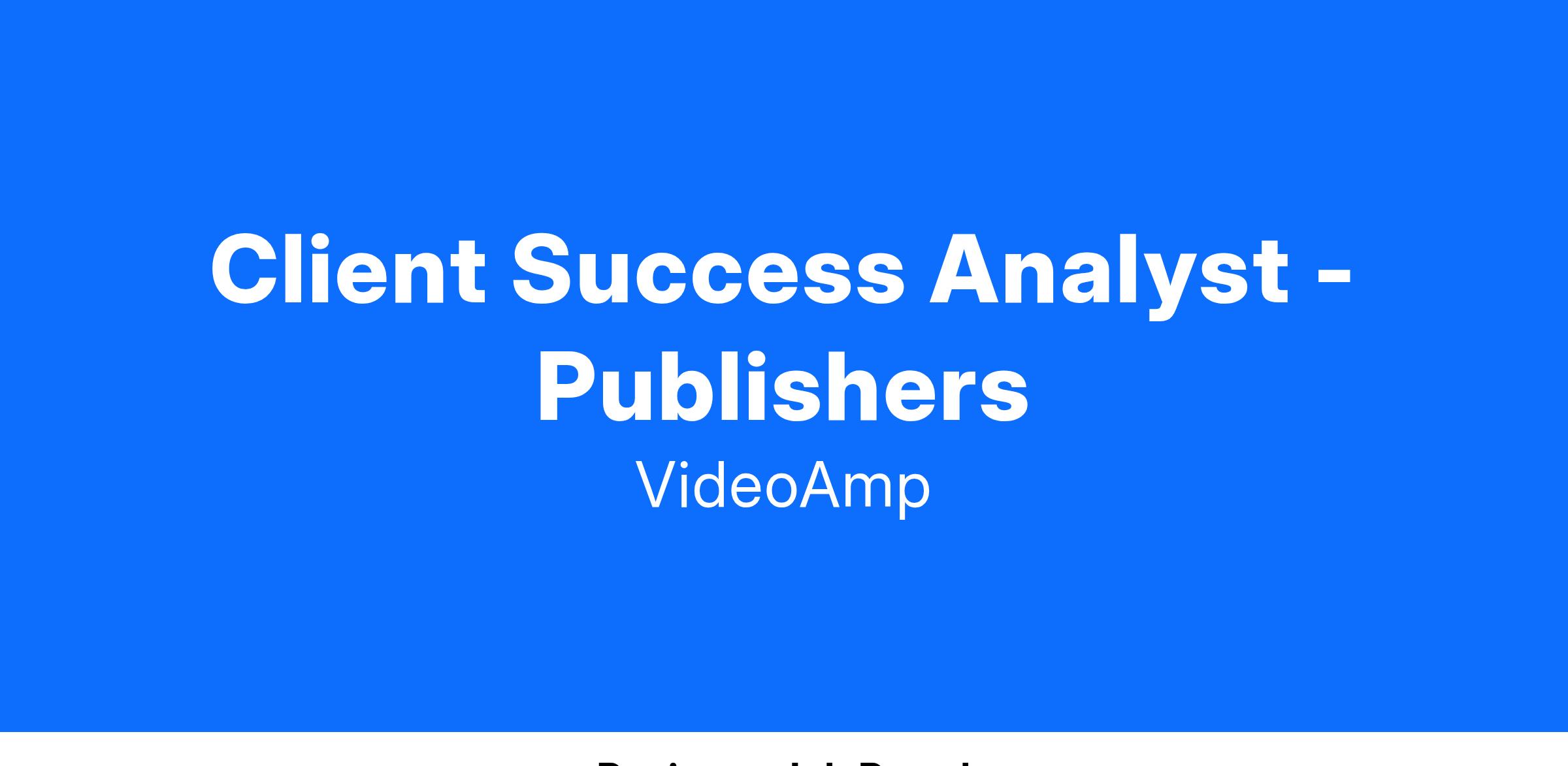 VideoAmp is looking for an experienced Client Success analyst with technical expertise in ad tech and TV to support our client success team. Grow revenue through flawless execution and implementation of processes to maximize efficiency.