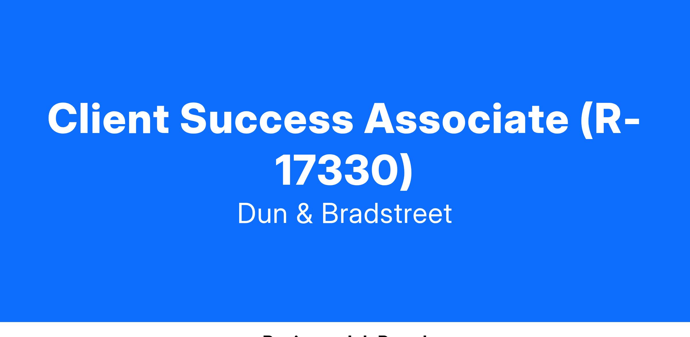 Dun & Bradstreet unlocks the power of data through analytics, creating a better tomorrow. Each day, we are finding new ways to strengthen our award-winning culture and accelerate creativity, innovation and growth. Our 6,000+ global team members are passionate about what we do. We are dedicated to helping clients turn uncertainty into confidence, risk into opportunity and potential into prosperity. Bold and diverse thinkers are always welcome. Come join us! Learn more at dnb.com/careers.