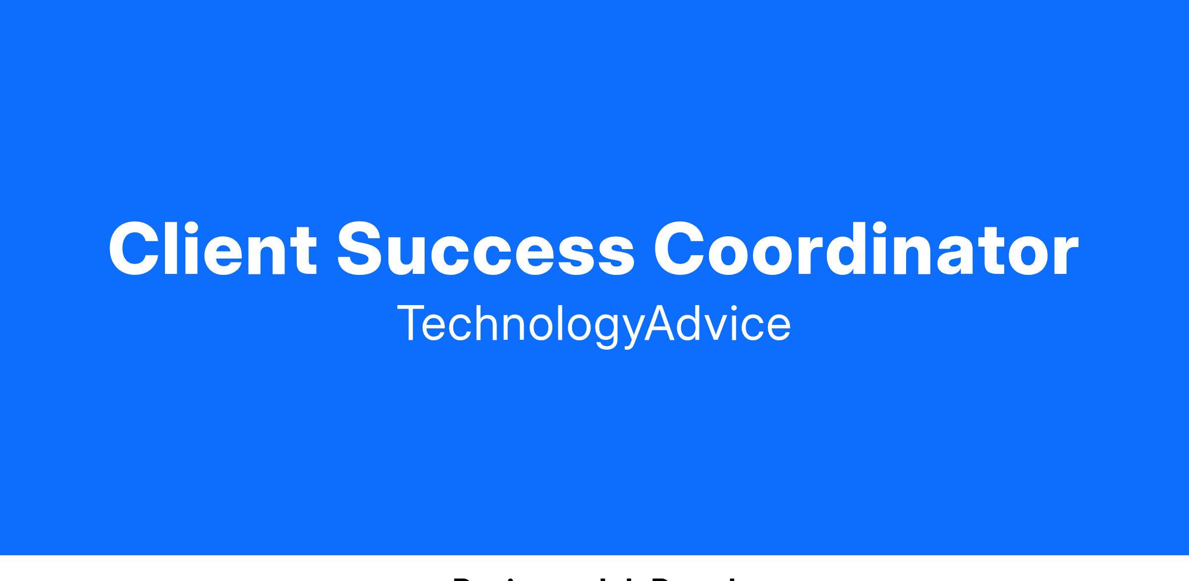 Our client success team focuses on the happiness of our clients. Each Client Success Coordinator is the main point of contact for a batch of specific accounts and works closely with TechnologyAdvice sales, operations, and technology teams to ensure the greatest experience from on-boarding to delivered product. It’s their job to take what’s been sold to the client, gather all the materials we need to get started, build out the program in our internal systems, and manage ongoing client communication. As such, the Client Success Coordinator is an expert on our processes and capabilities and we rely on them to translate this knowledge to clients.