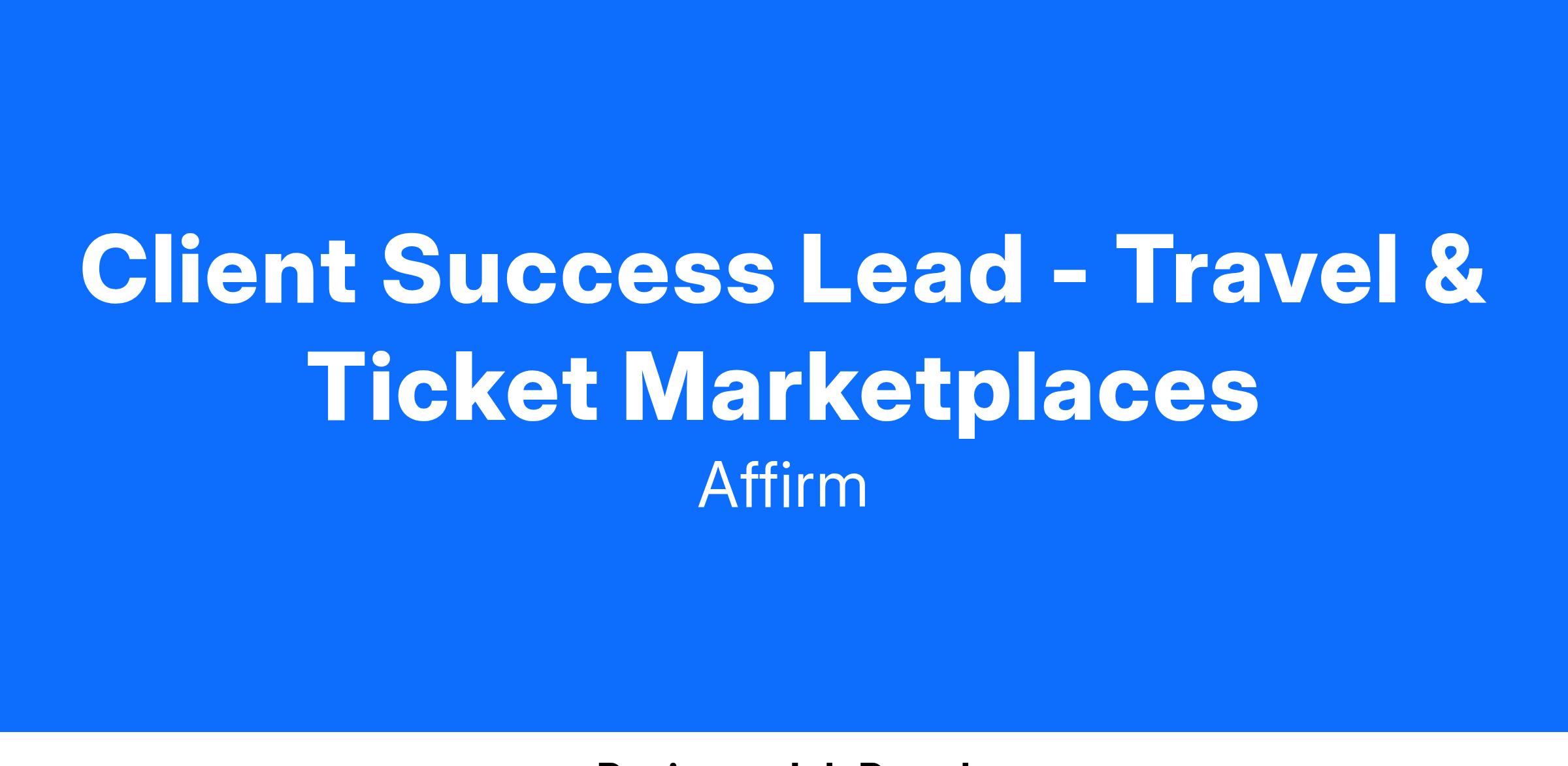 Affirm is committed to building lasting partnerships with merchants for long term growth and ongoing revenue generation. In this role, you will work with some of our largest online ticket marketplaces and travel partners to set the strategic direction of their programs, build internal advocacy and understanding of the Affirm platform, and implement initiatives that will expand usage of Affirm within their channels. The Client Success position is a high-profile, customer-facing role requiring outstanding relationship management and program management skills.
