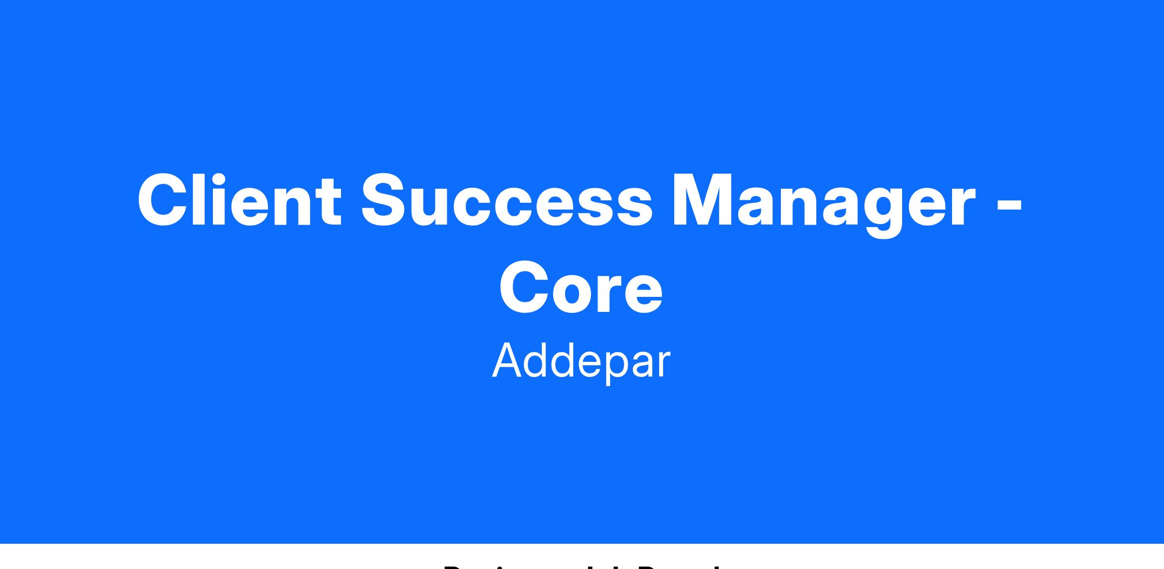 The Client Success Team at Addepar drives client success for the complete post-sales lifecycle of an Addepar client. Through strategic guidance and partnership, CSM will ensure clients derive maximum value from the platform, leading to overall adoption success, retention, and renewal. Few roles provide such a direct impact on the growth of the company!