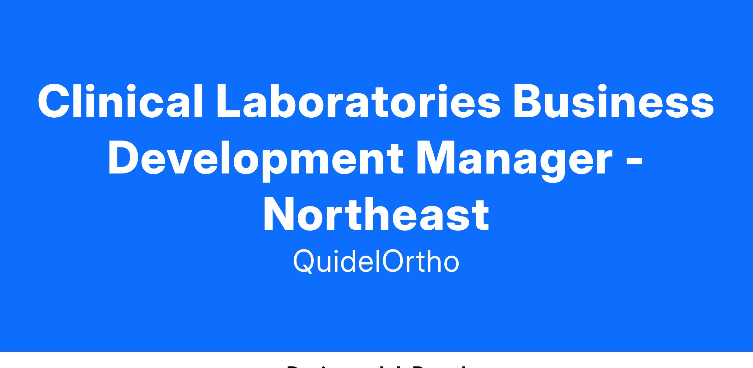 As we continue to grow, we are seeking a Clinical Laboratory Business Development Manager in the Northeast region. The Clinical Laboratory Business Development Manager is a front-line quota-carrying teammate responsible for the sale of Clinical Laboratory product lines to customers within a geographic territory. Responsible for new customer acquisition and implementation, and adoption of competitive Clinical Laboratory accounts. Additionally focus on retention of high value strategic current customers by teaming with Account Managers, Technical Specialists and Strategic Account Executives as applicable.