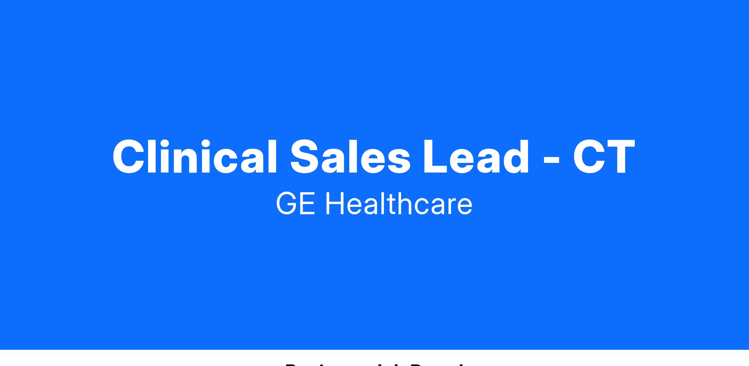 - Bachelor's degree from an accredited university or college (or a high school diploma / GED) plus 5 years in a Medical Device Clinical Sales Role or ARRT RT/CT certified with 5 years of experience in CT or IR.