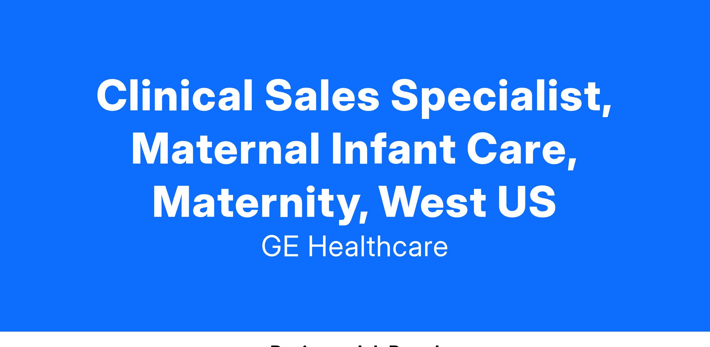 As the Maternal Infant Care (MIC) Clinical Sales Specialist (MCSS), you will actively support the MIC Segment of GE Healthcare as the clinical/technical expert for Maternal Fetal Products including fetal monitors, Centricity Perinatal and Novii. Customer facing staff responsible for winning business. Jobs at this level operate with some autonomy but are covered by well-defined Commercial policies and review of end results.