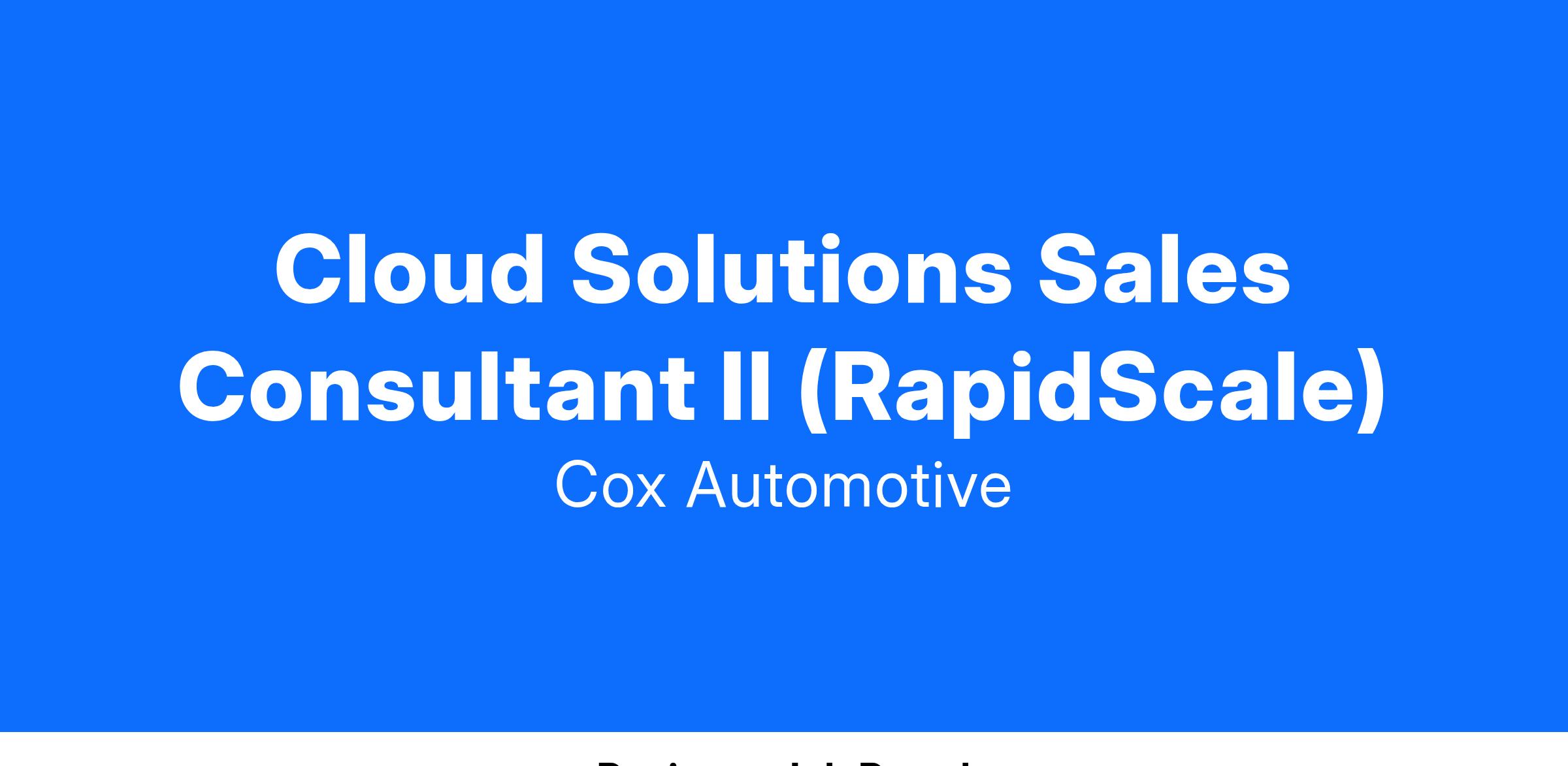 Cloud Solutions Sales Consultant II