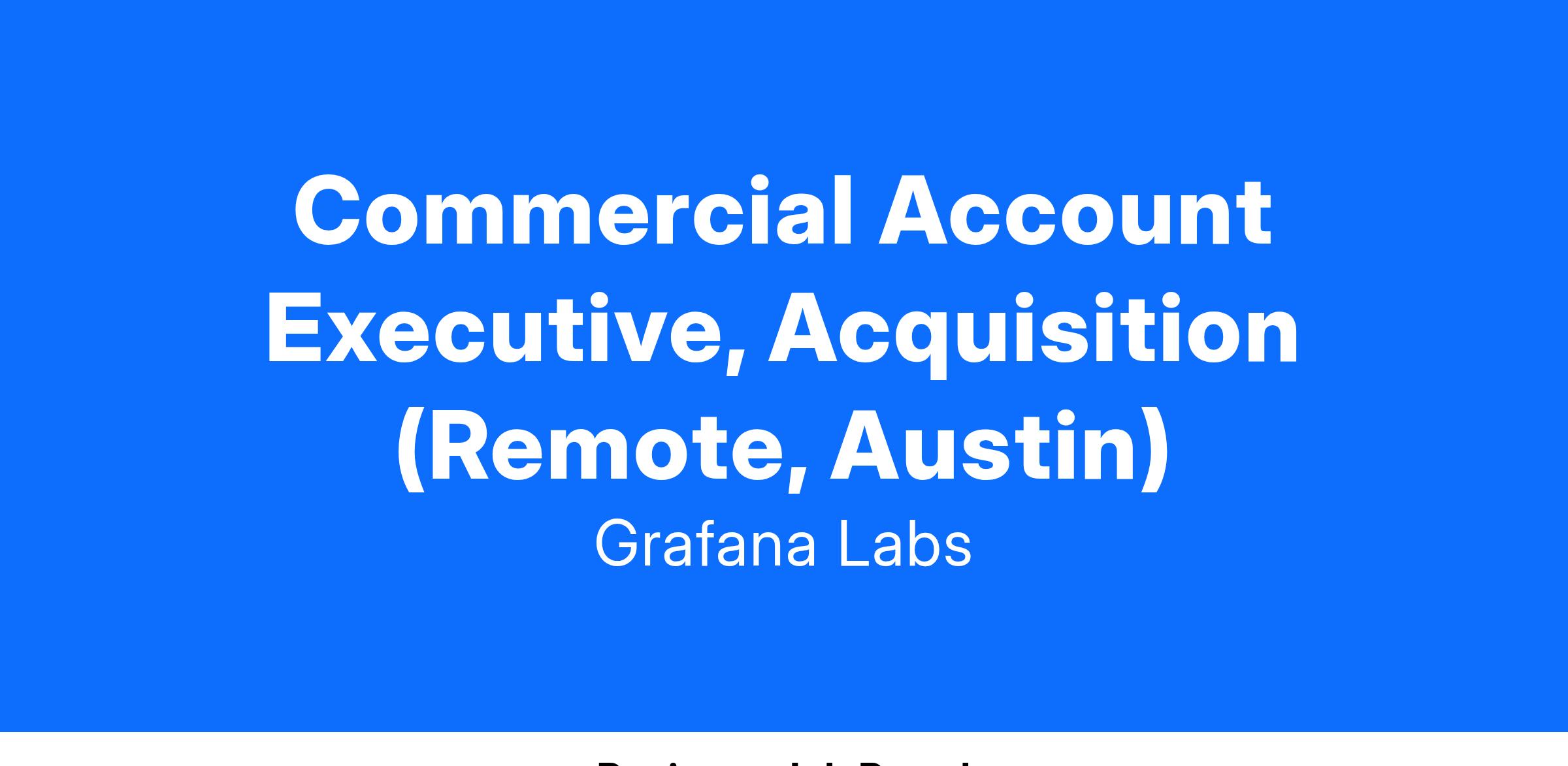 Grafana Labs is looking for Commercial Account Executive who will be responsible for prospecting and closing new business across the Central Region of the US. You will identify, nurture and close opportunities with both new and existing customers, manage forecasts and track customer data. We're strong proponents of a consultative sales approach - learn about the customer's needs first before talking products. Your expertise will be critical in helping articulate the value of our products, work with the customer during the trial phase and hand off a strong relationship to our Customer Success team. Ideally, you come from a technical background and have sold technical products before.