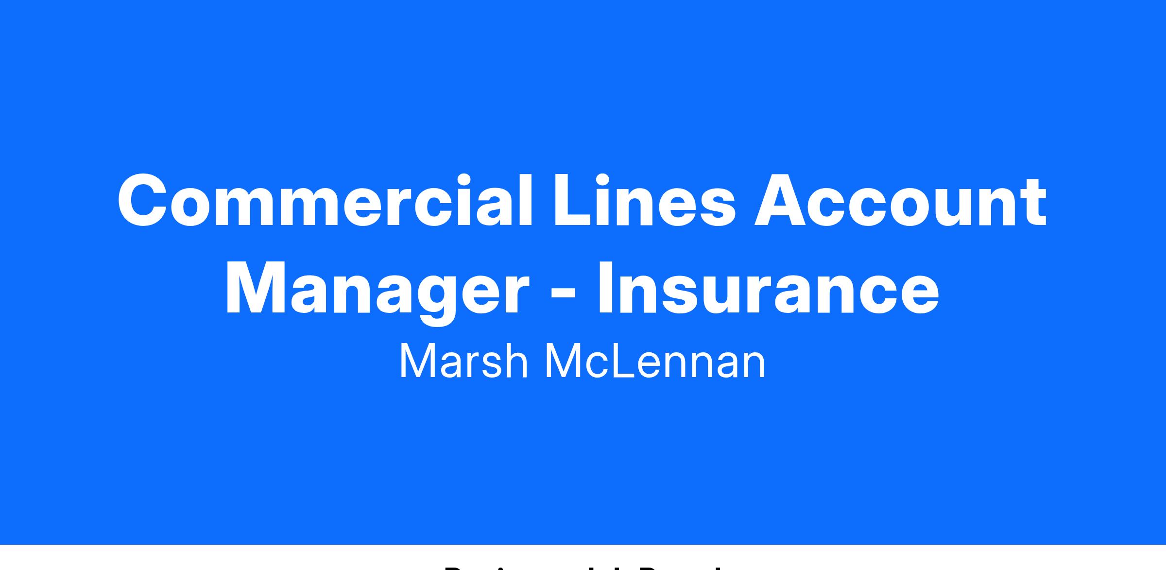 Commercial Lines Account Manager - Insurance