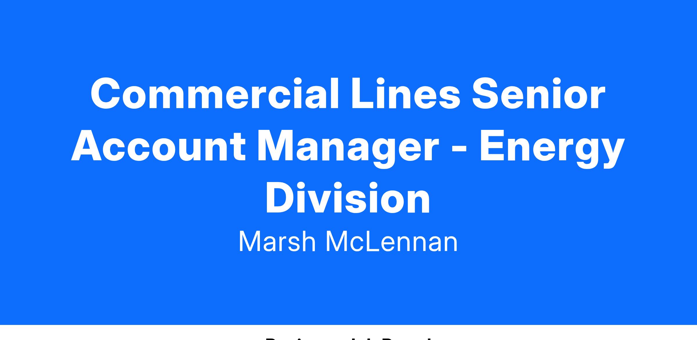 As our Senior Account Manager on the Commercial Lines Energy team, you'll be primarily responsible for independently marketing smaller/or less complex accounts. Exercise independent decisions relating to client analysis of coverage, recommending coverage needs, and suggesting new lines of coverage for existing clients. Be viewed as a leader and resource by colleagues and peers who provides exceptional client service and serves as a mentor to others. Be knowledgeable of coverages, carrier guidelines, underwriting, legislative changes, and maintain relationships with clients and carrier representatives. Develop strong relationships with carriers and clients. Support Producer and Marketing Account Executives in managing larger and/or more complex accounts.