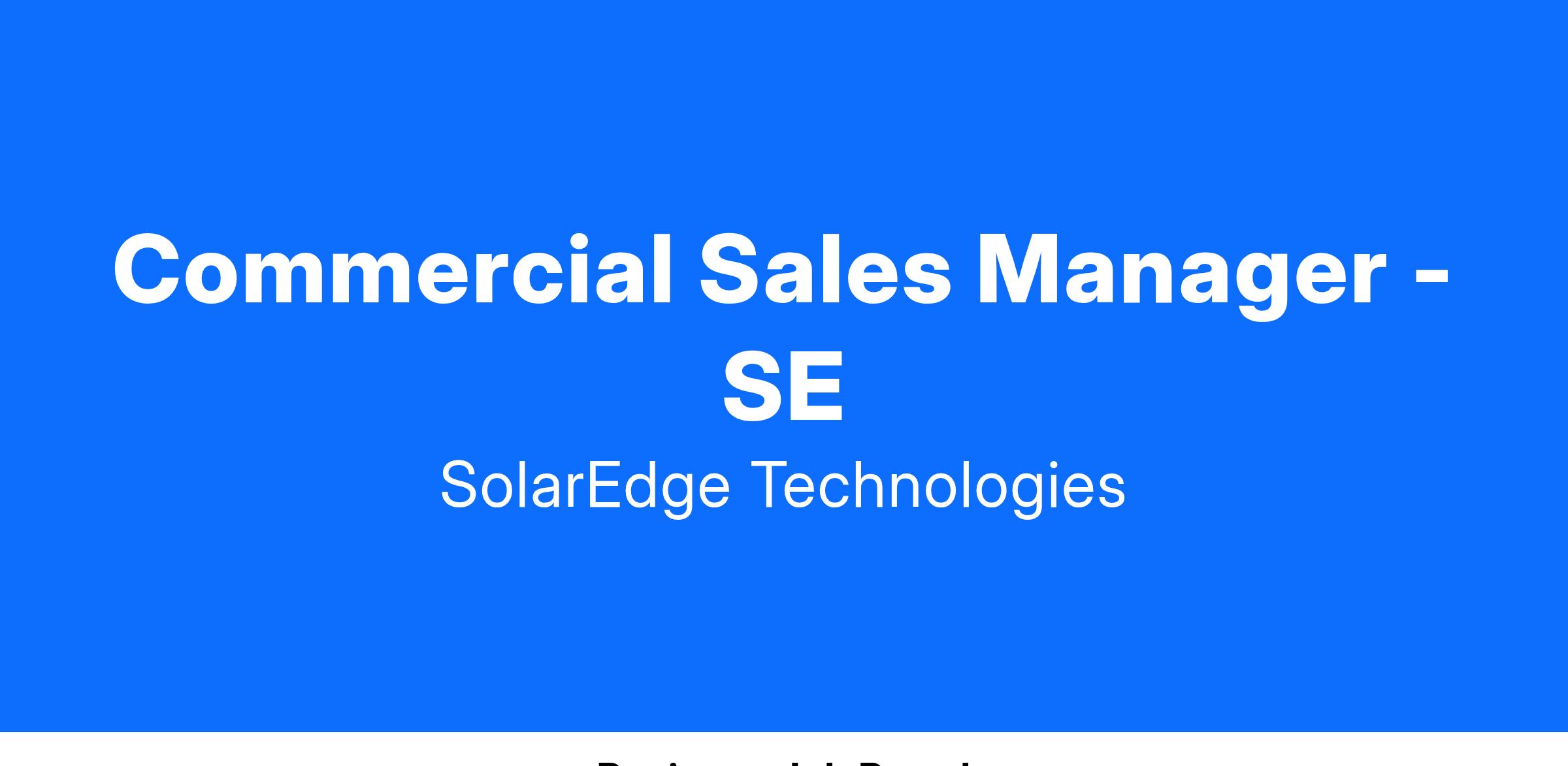 This position provides the successful candidate with the opportunity to join SolarEdge’s North American Commercial Sales Team and have a major part in leading the company’s sales efforts in the commercial and industrial segment of the solar industry, through direct and channel sales.