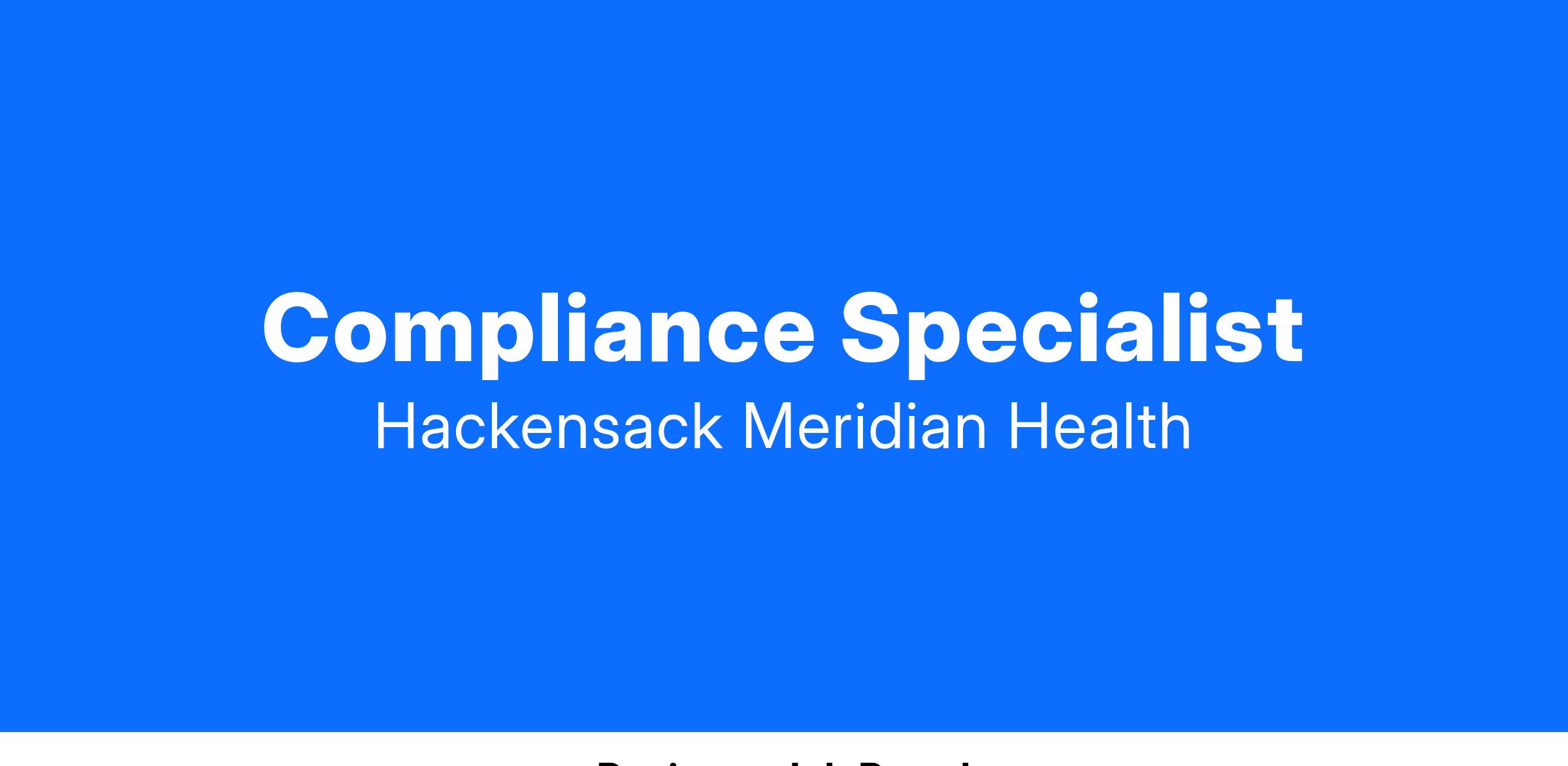 A day in the life of a Compliance Specialist at Hackensack Meridian Health includes: