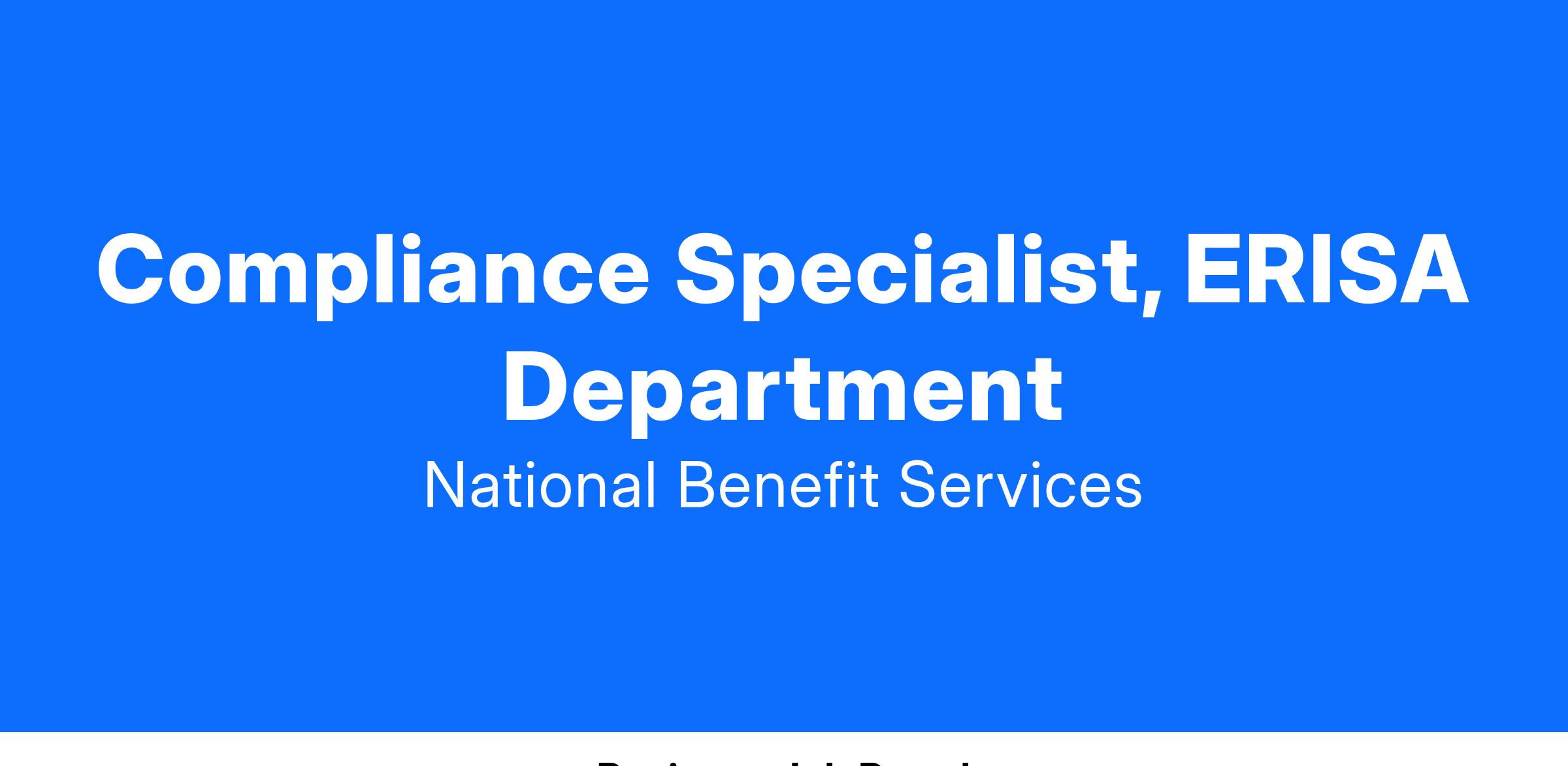 Full-time, fully remote position in retirement benefits administration, expected to work 8 AM to 5 PM, Monday through Friday . Wonderful working environment with opportunity for