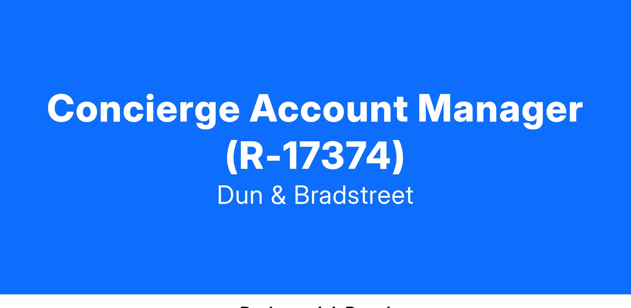Accommodations information for applicants with disabilities: Dun & Bradstreet is committed to providing reasonable accommodation to, among others, individuals with disabilities and disabled veterans. If you need an accommodation because of a disability to search and apply for a career opportunity with Dun & Bradstreet, please send an e-mail to AcquisitionT@dnb.com to let us know the nature of your accommodation request and your contact information.