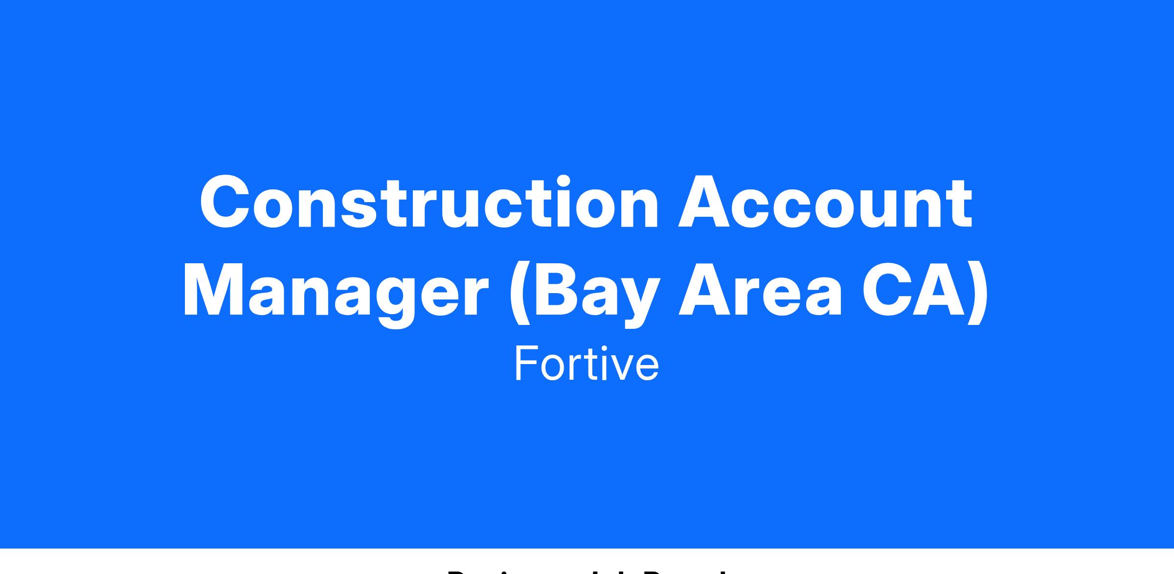 Gordian is looking for an Account Manager (based in the Bay Area - Sacramento, SF, San Jose)who demonstrates professionalism, construction knowledge and delivers results through their expertise while using Gordian’s extraordinary construction data and software. Primary responsibility for Gordian Account Managers is to provide support, training, for products and services centered around Job Order Contracting (JOC) for clients in a specific geographic area.