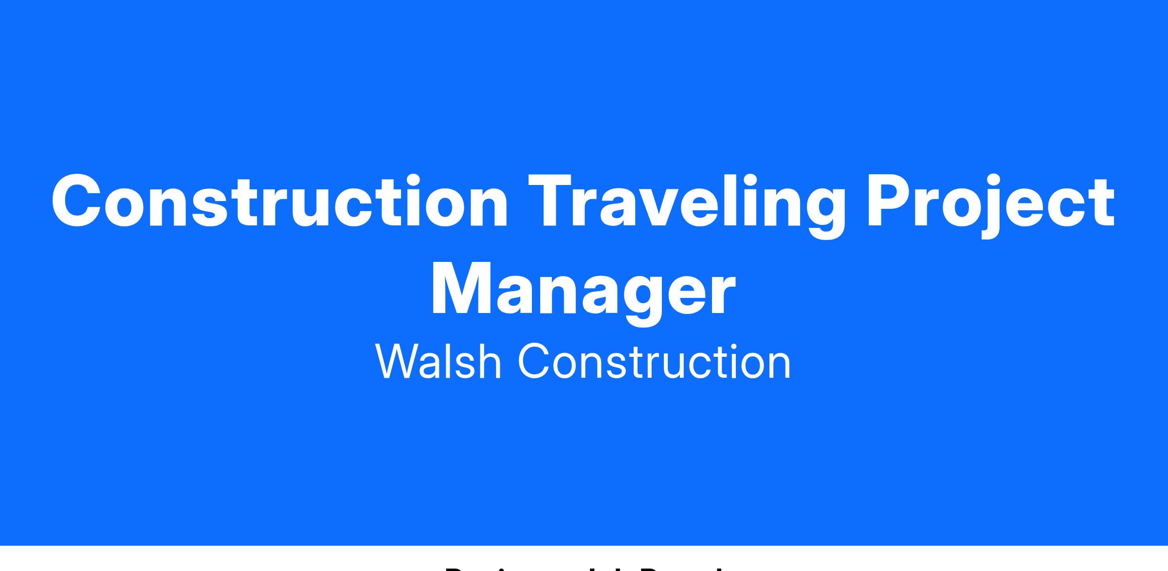 Walsh is currently seeking a traveling Project Manager for the Building Division.