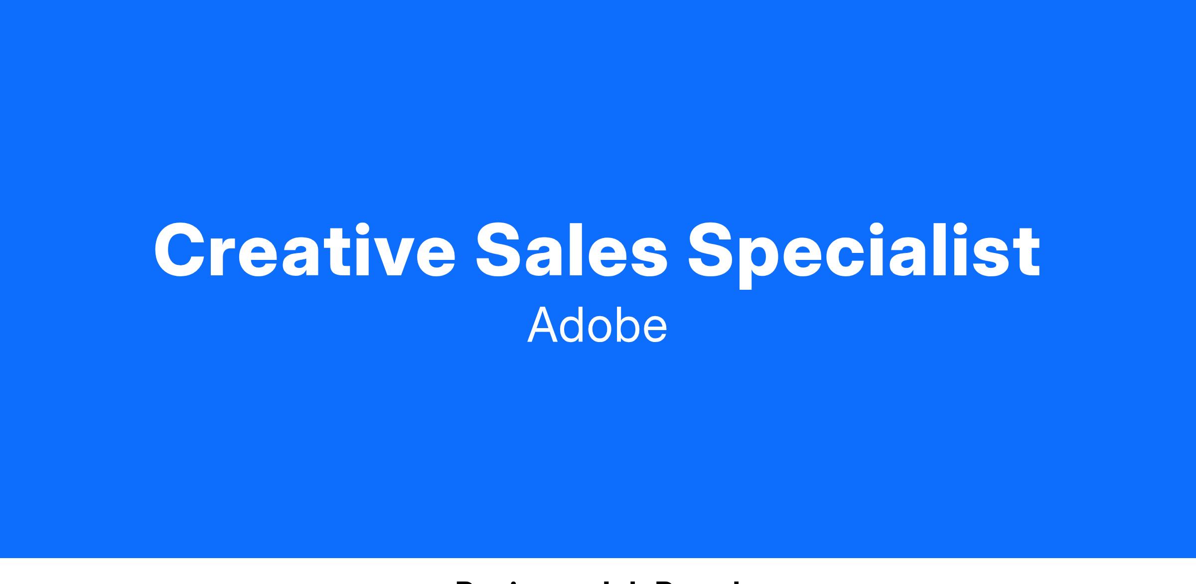 One of Adobe's primary goals is to continue the growth of the company as an innovative and significant provider of enterprise-class software solutions. Adobe enterprise sales is looking for a Creative Sales Specialist to build lasting client relationships within the Digital Media commercial market. The Creative Sales Specialist is responsible for driving our new creative and content solutions (Creative Cloud Edition 4 with Premium, Express with Firefly) to our top enterprise customers. This role will also partner with the larger Creative & Document Cloud Field Sales teams in the sale of Adobe software and solutions. This includes the development of long-term relationships with new and existing customers as well as the development of account plans.