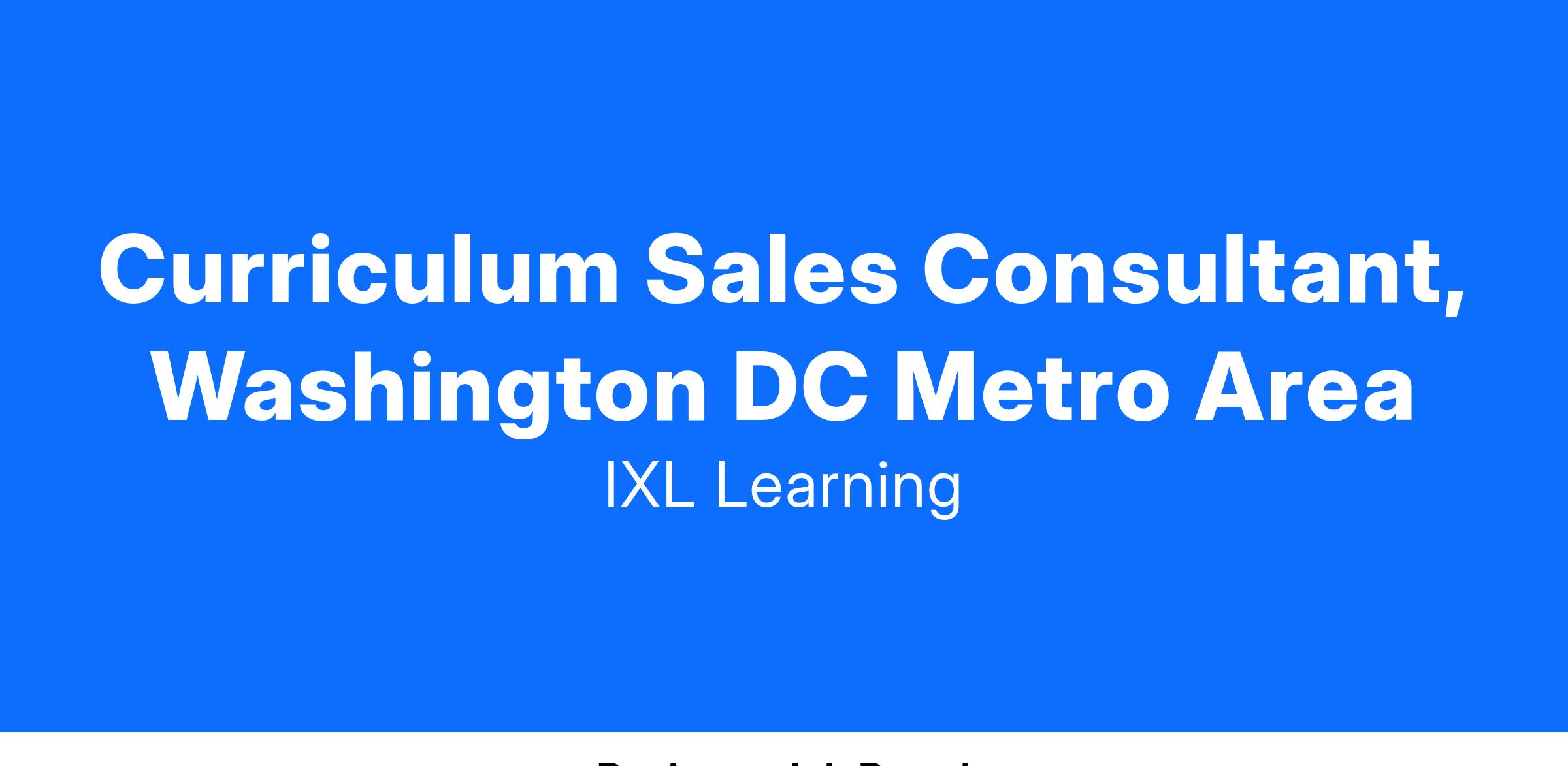 IXL Learning, developer of personalized learning products used by millions of people globally, is seeking a Curriculum Sales Consultant to join our sales team. In this role, you will have the exciting opportunity to help drive growth and shape the future of our new core curriculum program, Takeoff by IXL. #LI-TL2