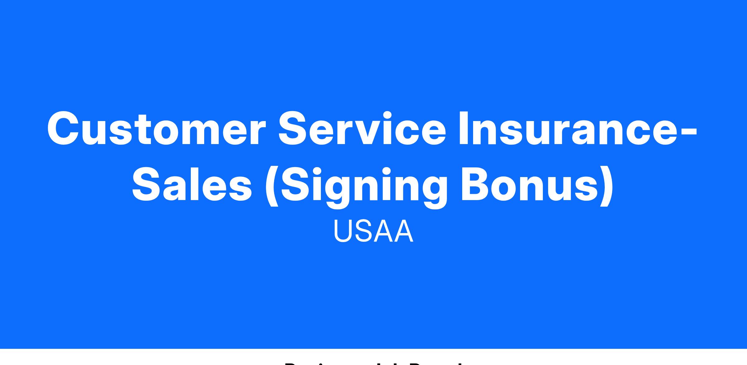 Our Insurance Customer Service Representatives work within defined guidelines and framework, to provide customer service, sales, and retention activities for one or more of USAA's Property & Casualty personal line products. Representatives interact with our members across multiple contact channels (i.e. inbound phone calls, email, chat, social media, etc.) to provide adequate coverage and advice to help ensure members’ financial security.