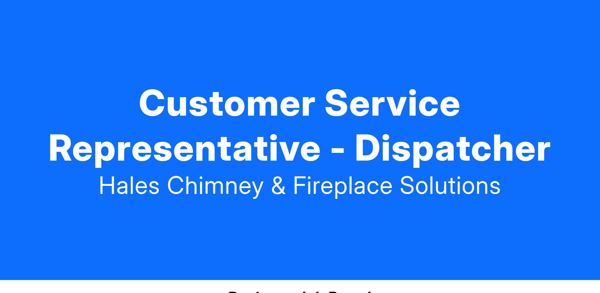 Hales Chimney & Fireplace Solutions in McKinney, TX is actively seeking a reliable Customer Service Representative to join our team full-time. Are you looking to build a successful career? Would you like to join a company that truly takes care of its employees? If so, please keep reading!
