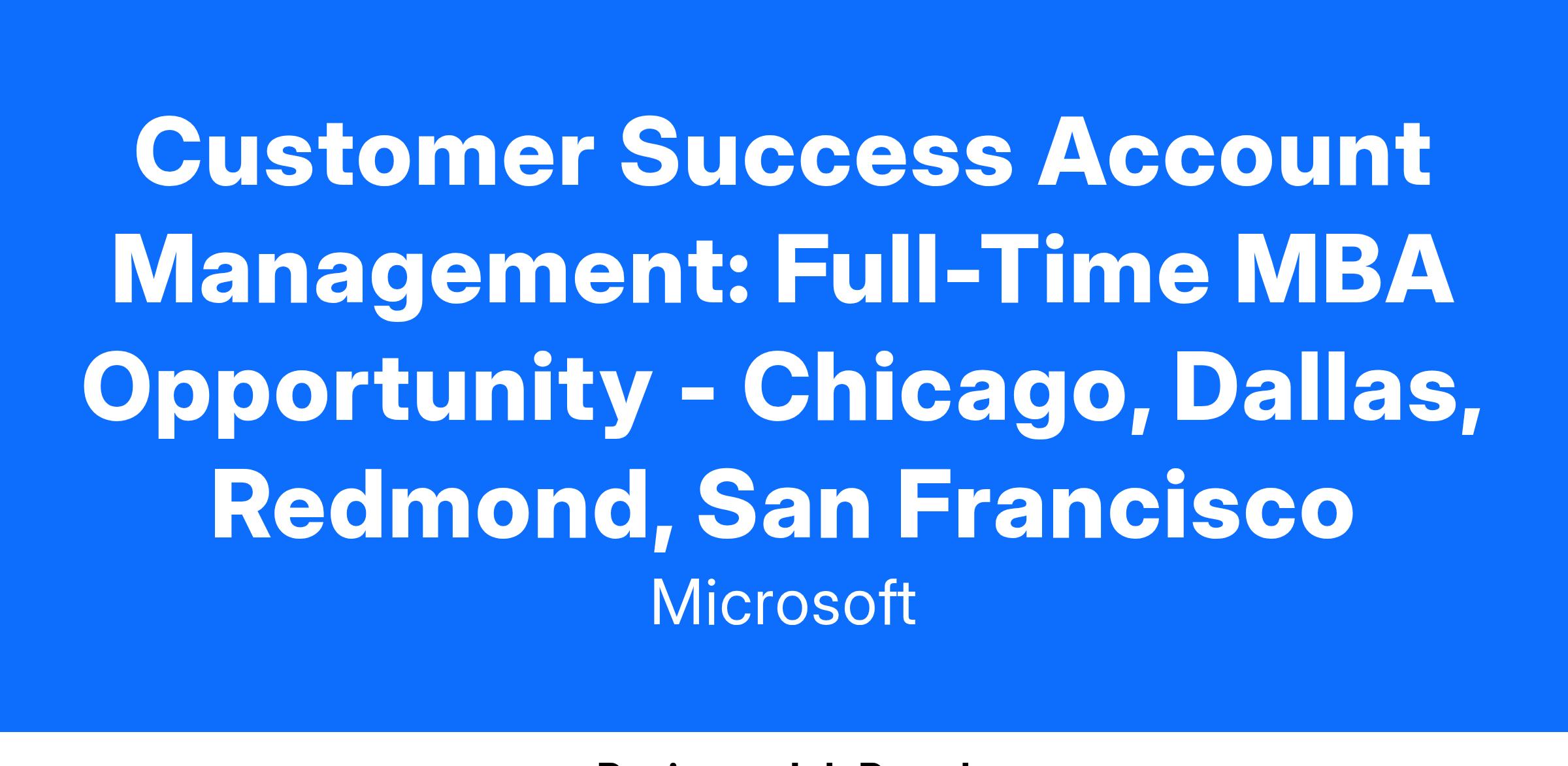 By applying to this position, you will be considered for positions in Chicago (IL), Dallas (TX), Redmond (WA), and San Francisco (CA).