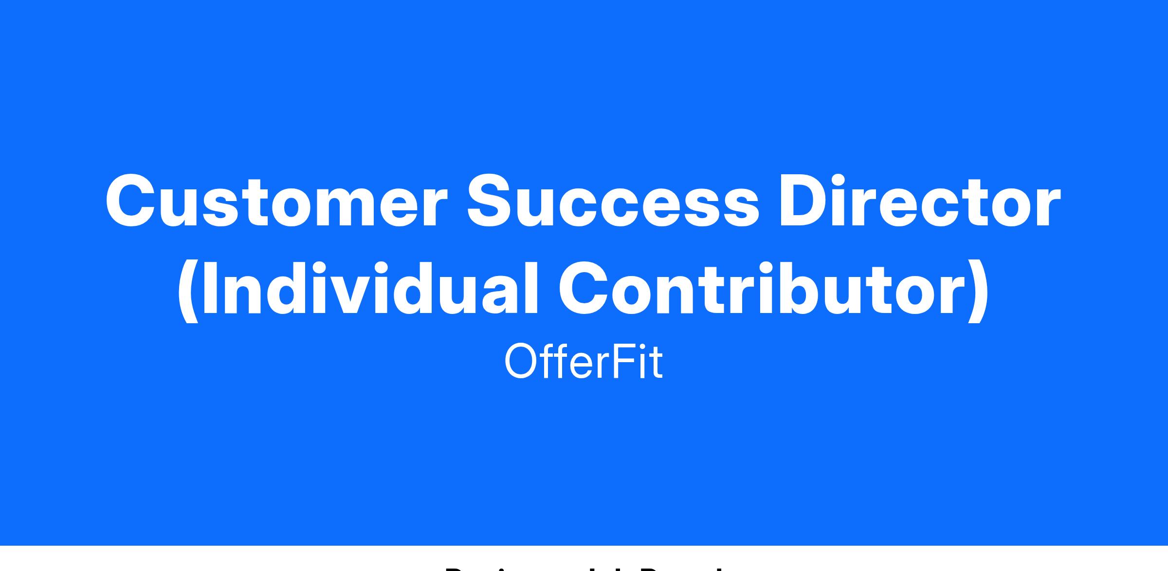 The Customer Success Director is a critical individual contributor role on our growing Customer Success team to ensure OfferFit customers are highly successful with the product. In this capacity, you will collaborate closely with different teams, internally and externally, to drive renewals, upsells and expansions. You’ll oversee design and execution of OfferFit use cases, working closely with customers to identify future use cases, and own executive level relationships. You will also contribute significantly to the OfferFit product development process, and act as the voice of our customers. Finally, given the analytical nature of OfferFit’s product and use cases, you will conduct analysis of results and build compelling presentations to communicate customers insights, troubleshoot issues, and showcase OfferFit’s value proposition.