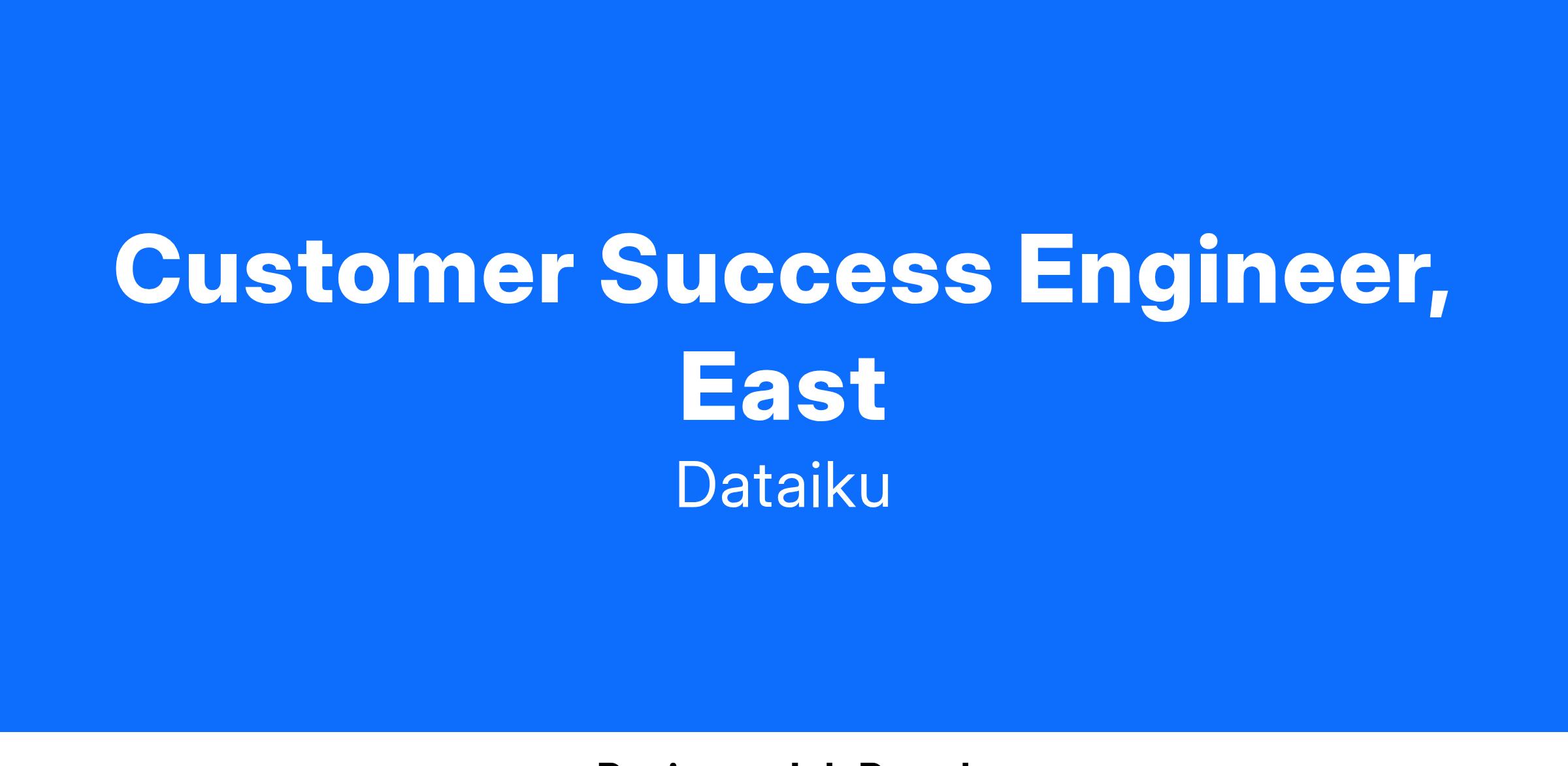 - Work closely with Dataiku’s customers in the East, focusing on onboarding, increasing user adoption, retention, and satisfaction.