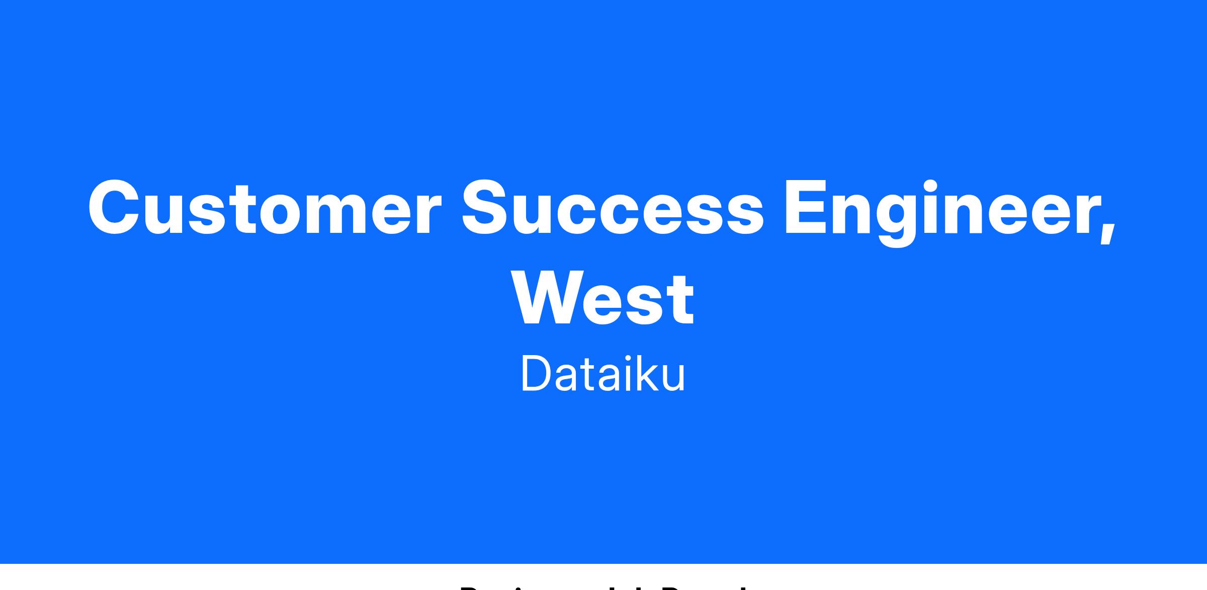 - Work closely with Dataiku’s customers in the West, focusing on onboarding, increasing user adoption, retention, and satisfaction.
