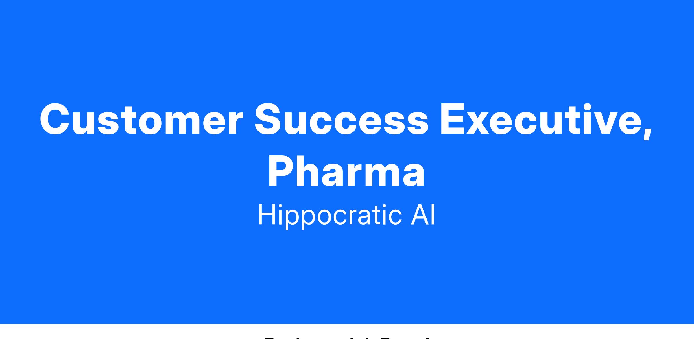We are seeking a highly motivated and experienced Customer Success Executive, Pharma to manage ongoing relationships with Hippocratic AI Pharma clients and ensure the success and satisfaction of each Hippocratic program/service they procure.