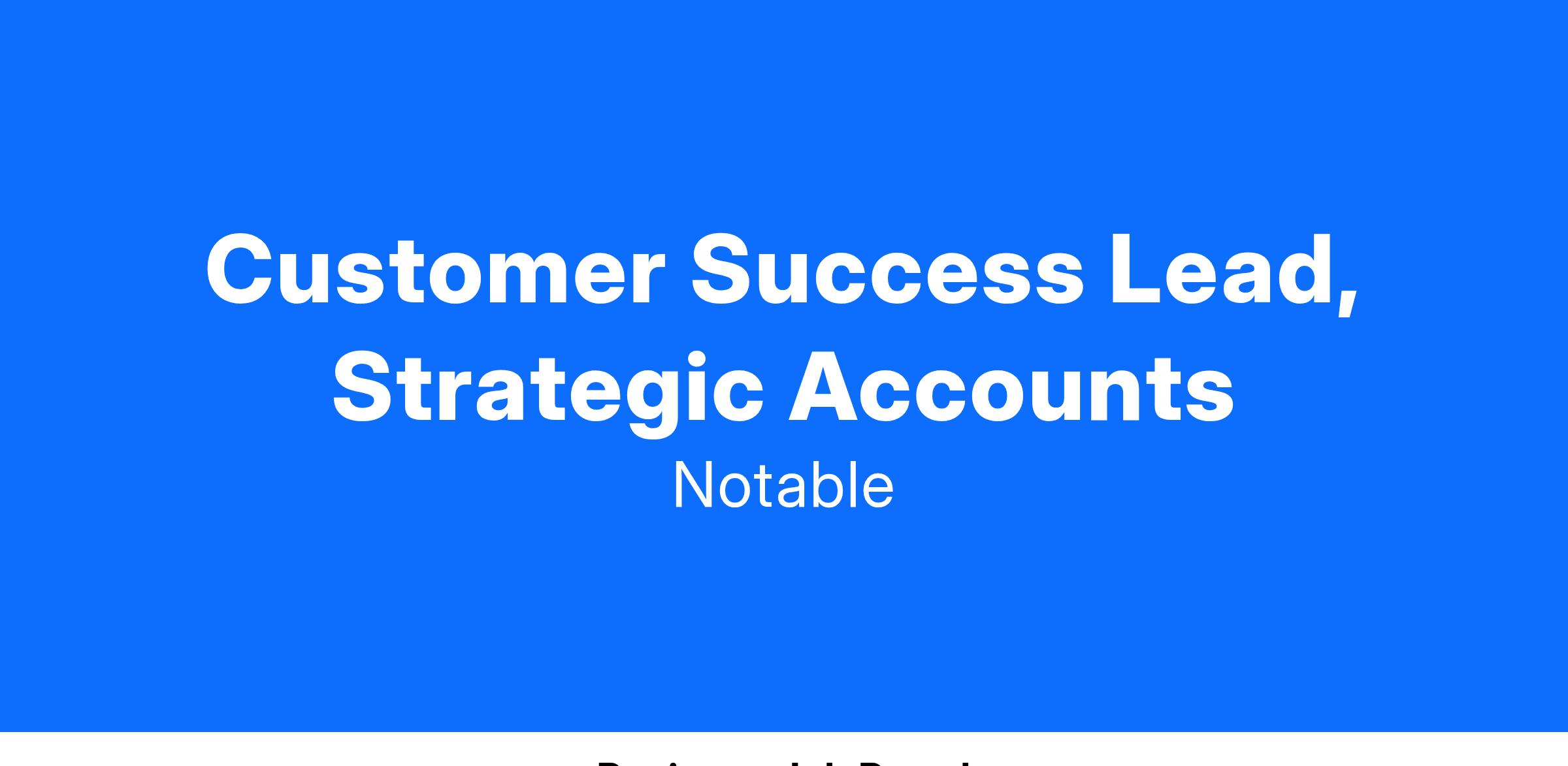 As a Customer Success Lead for strategic accounts at Notable Health, you will be the orchestrator of customer success for our most valuable and complex healthcare clients. You will immerse yourself in their world, understanding their unique needs, challenges, and ambitions, and then leverage Notable's full platform capabilities to drive transformative outcomes. This is a highly visible role that requires a blend of technical expertise, relationship-building, commercial acumen, and a passion for driving innovation in healthcare.