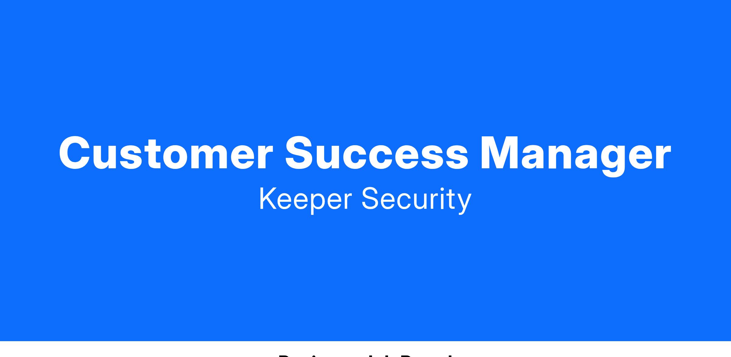 - Participate in the evolution of Keeper Securityβs own Customer Success programs and processes; insist on excellence in our own Customer Success initiatives