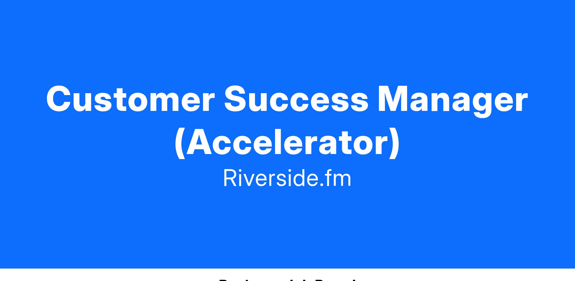 Riverside makes it easy to record remote podcasts and video interviews that look and sound like they were recorded in a million-dollar studio. Since launching, we have experienced rapid growth and are trusted by customers including Spotify, the New York Times, LinkedIn, and Marvel. We are a resourceful and growing team who are looking for top talent to join us and help shape the future of Riverside.