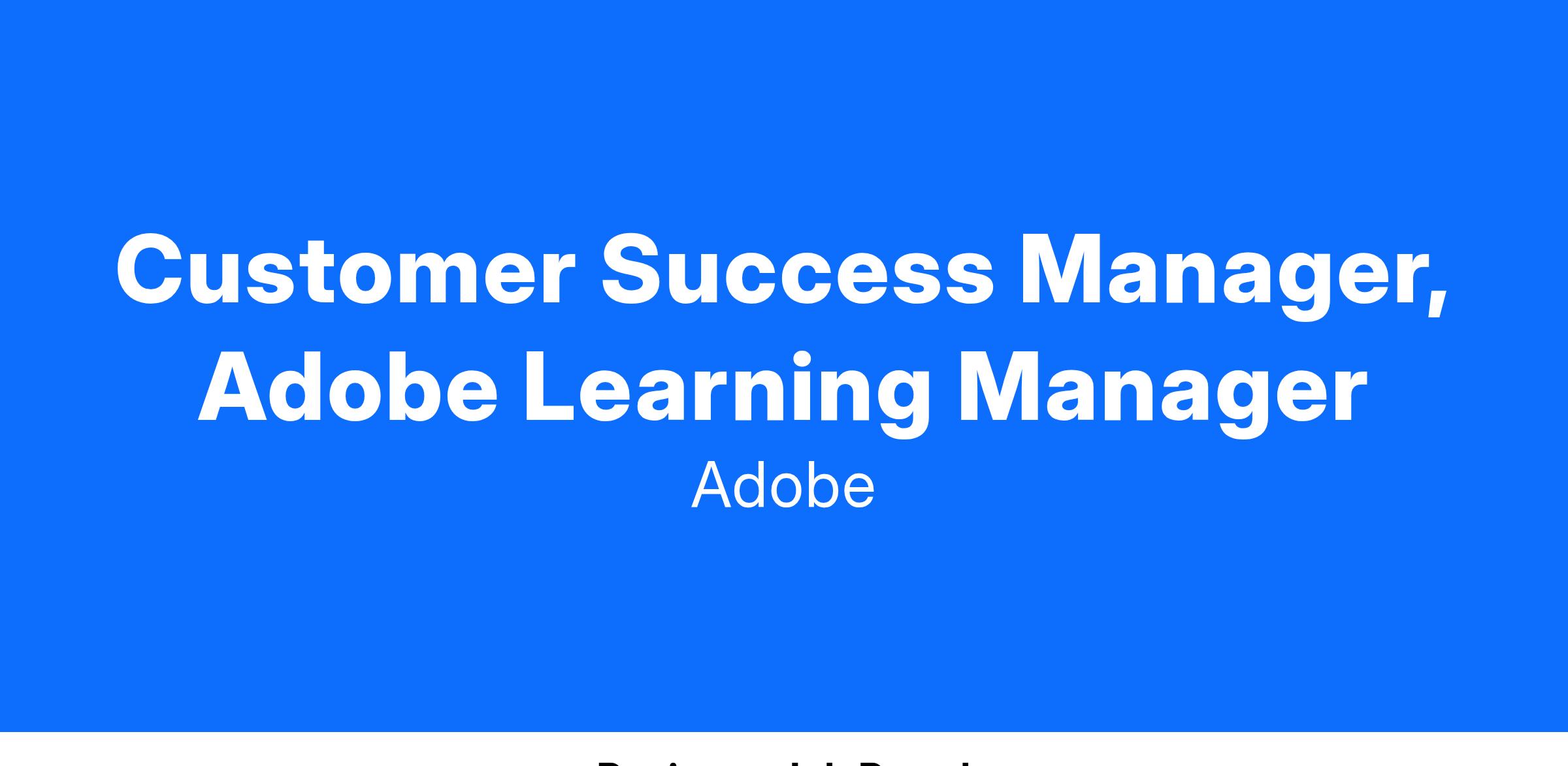 We are looking for a Techno-functional Customer Success Manager to join our team. Adobe Learning Manager is Adobe’s Learning Management System (LMS), and we are looking for passionate learning technology professionals who will collaborate with our customers to help them derive the best use of the LMS.