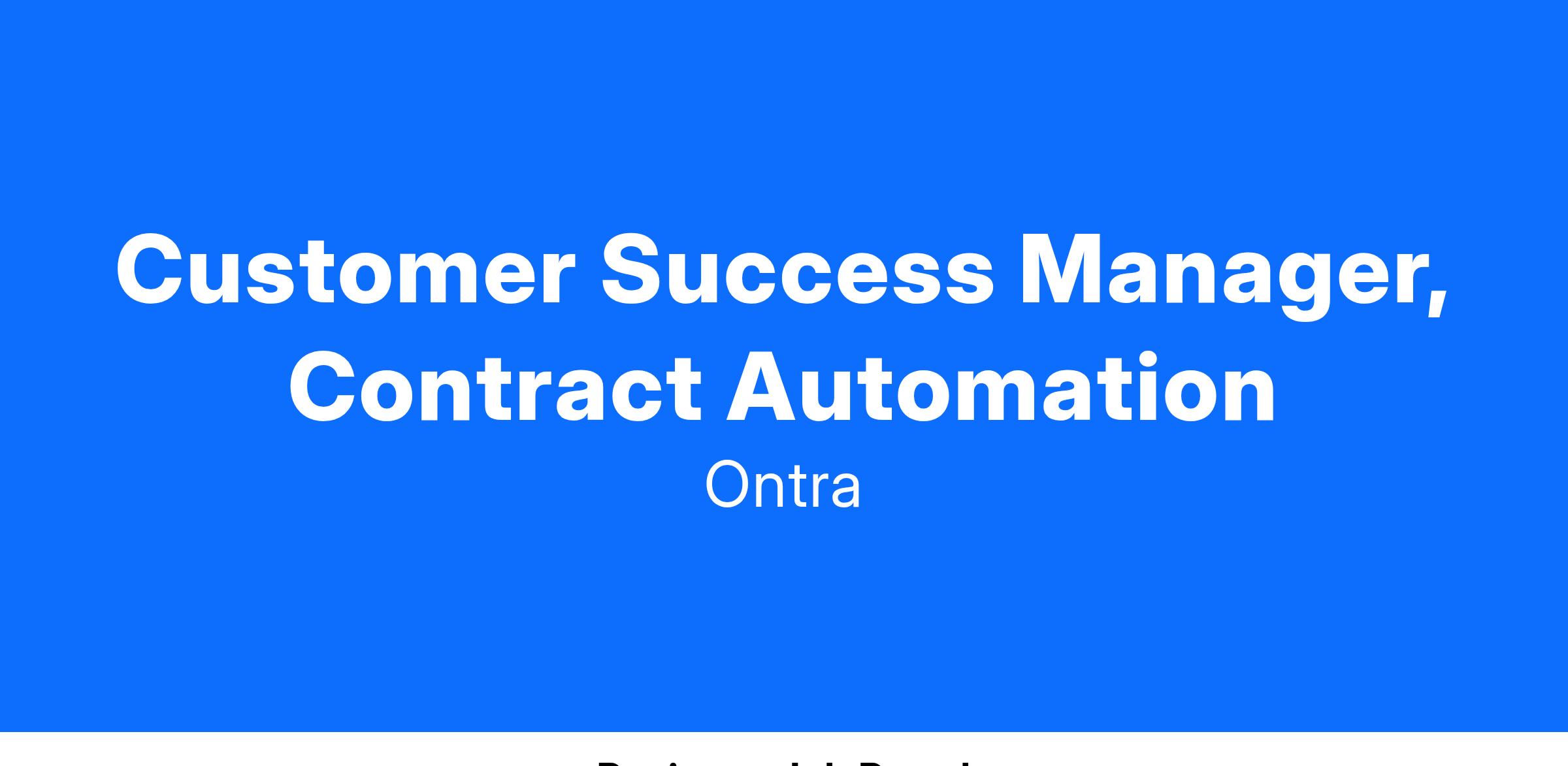 Ontra is seeking a Customer Success Manager reporting to our Managing Director, Customer Success - Contract Automation.