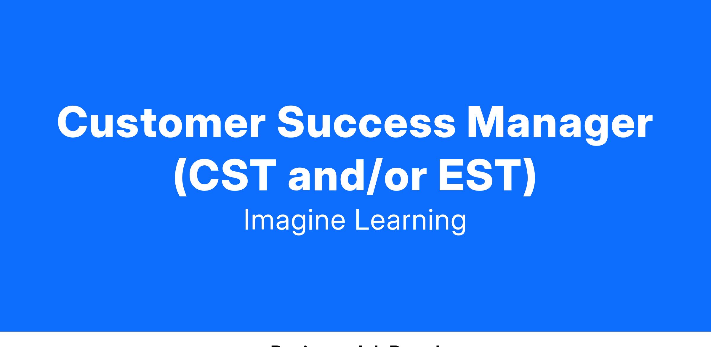 To all recruitment agencies: Imagine Learning does not accept agency resumes. Please do not submit candidates for consideration via our online application system, to Imagine Learning employees, or to any other organization location. Imagine Learning is not responsible for any fees related to unsolicited resumes.